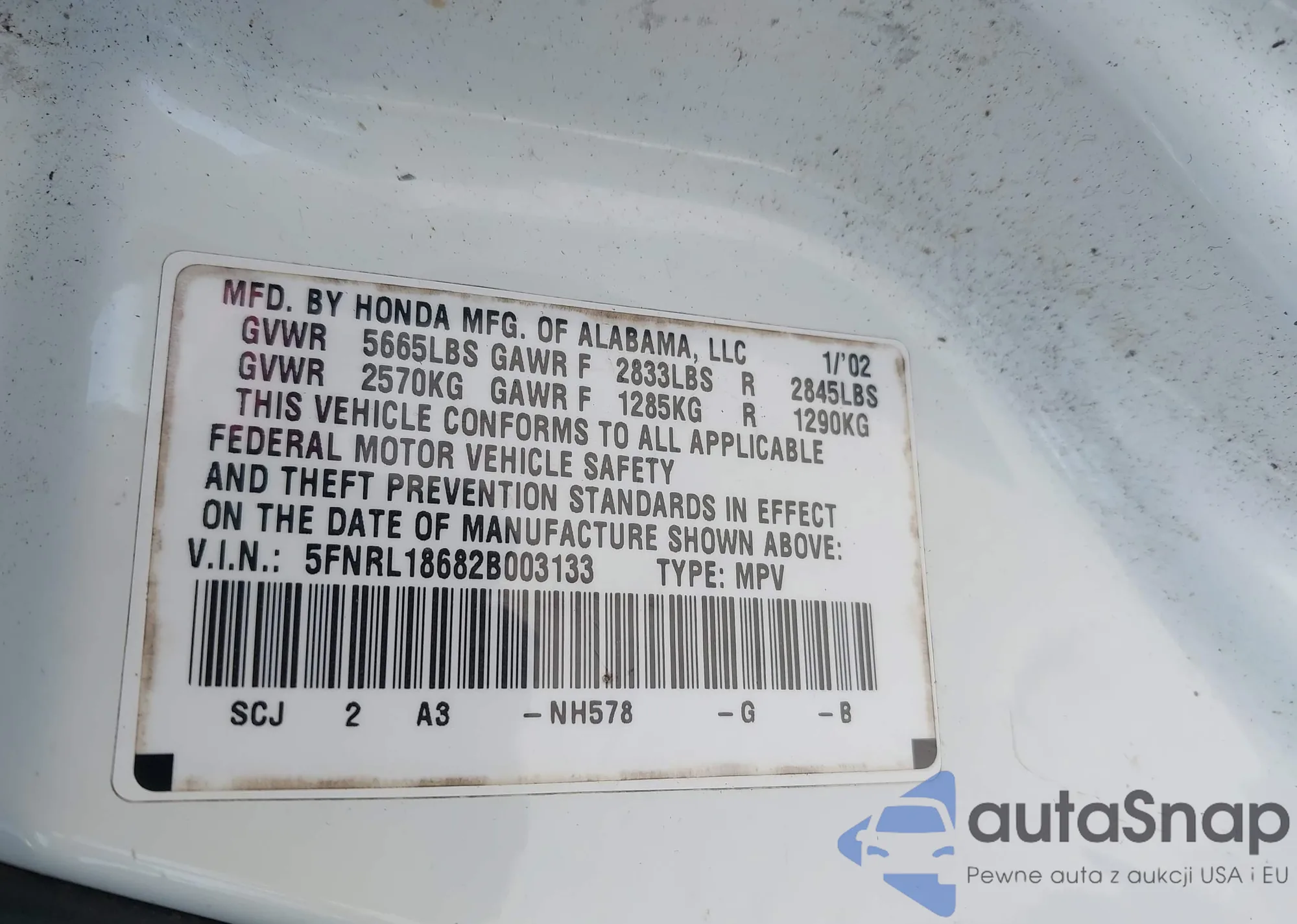 LOT: 41918726 VIN: 5FNRL18682B003133