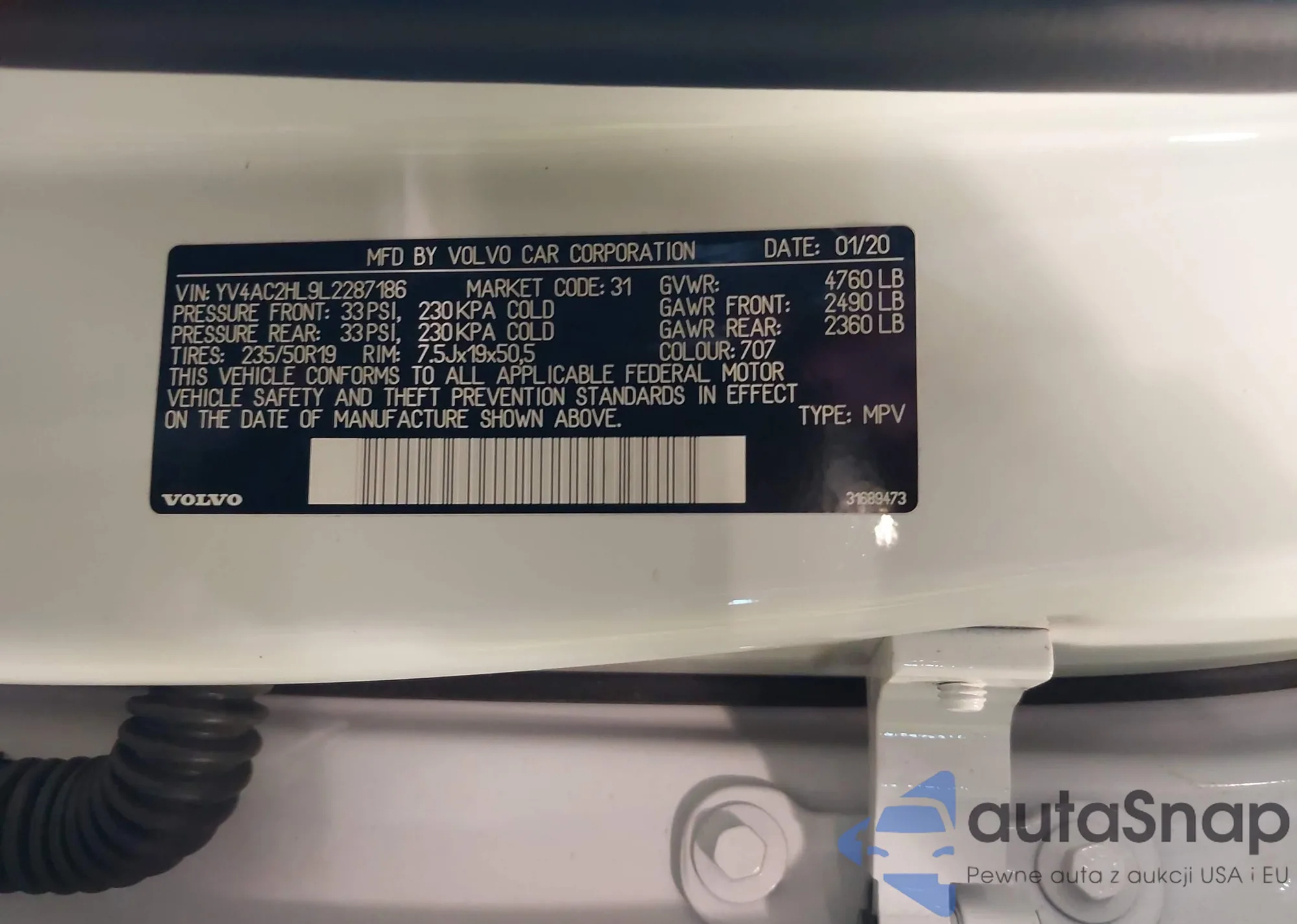 • VIN YV4AC2HL9L2287186