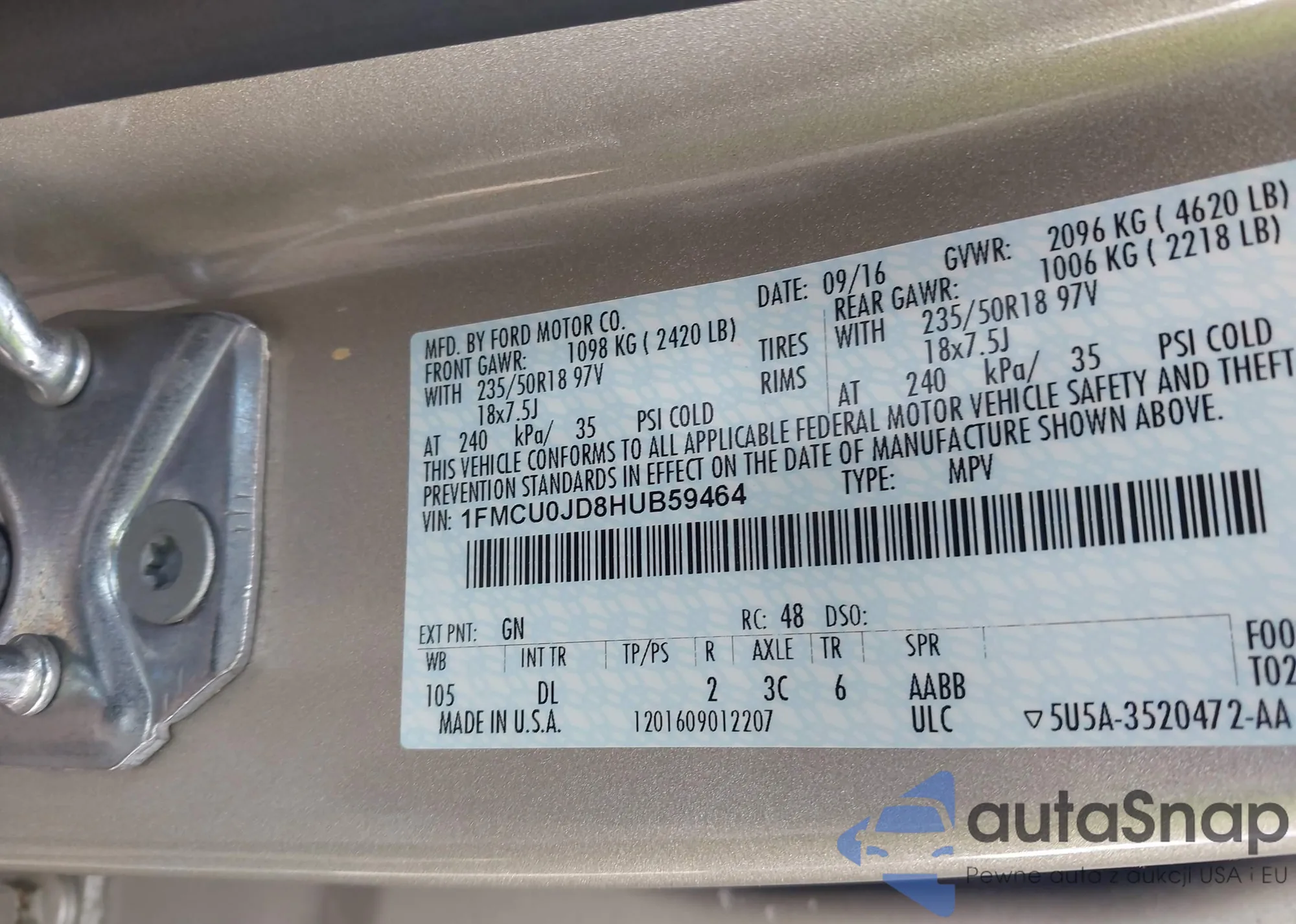 • VIN 1FMCU0JD8HUB59464