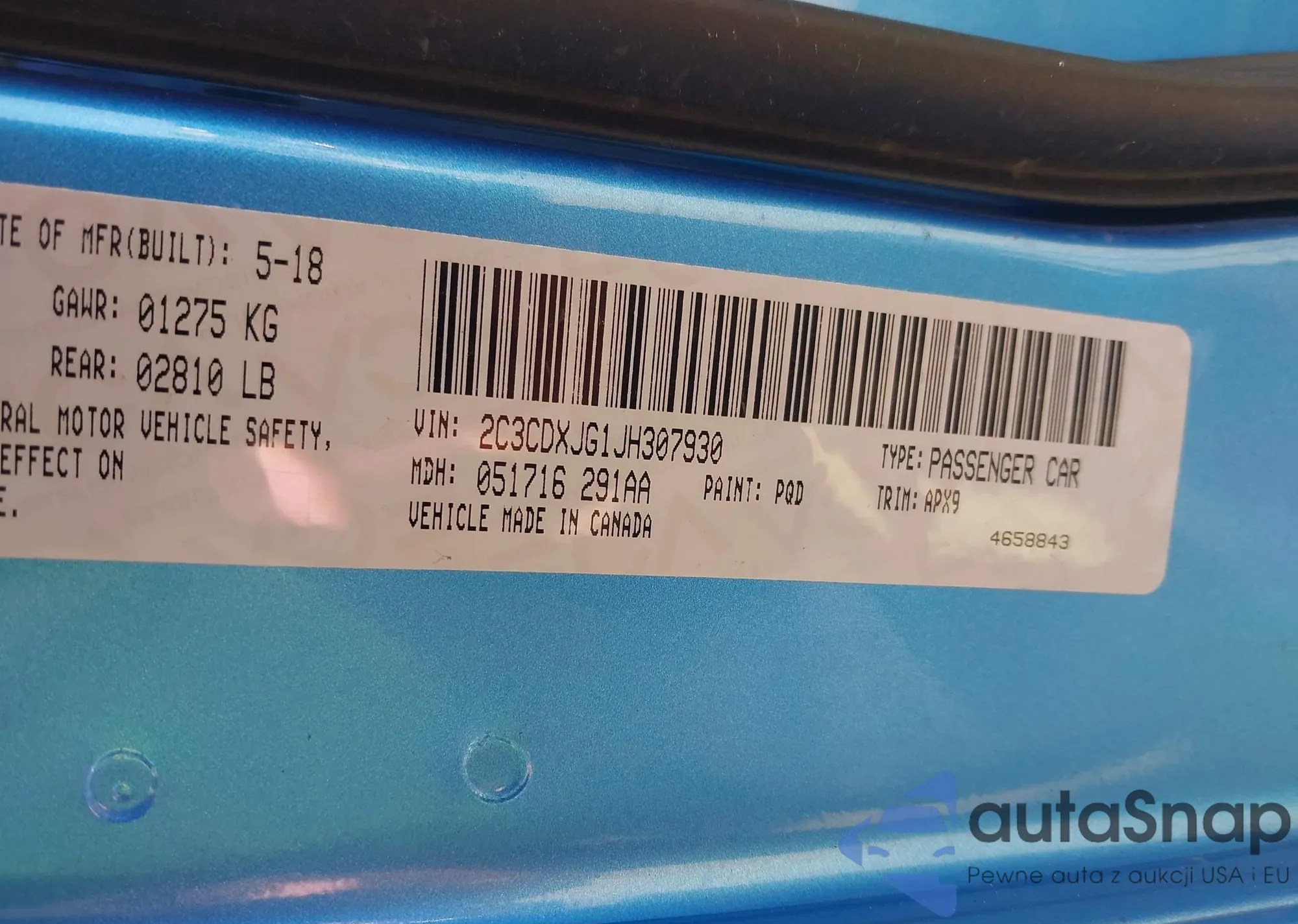 • VIN 2C3CDXJG1JH307930