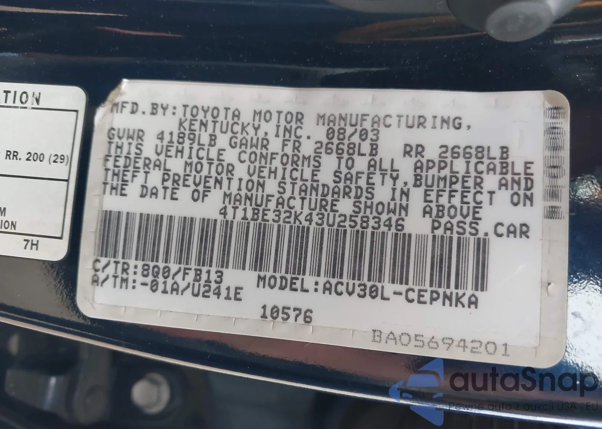 LOT: 42333230 VIN: 5TBRT34143S344556