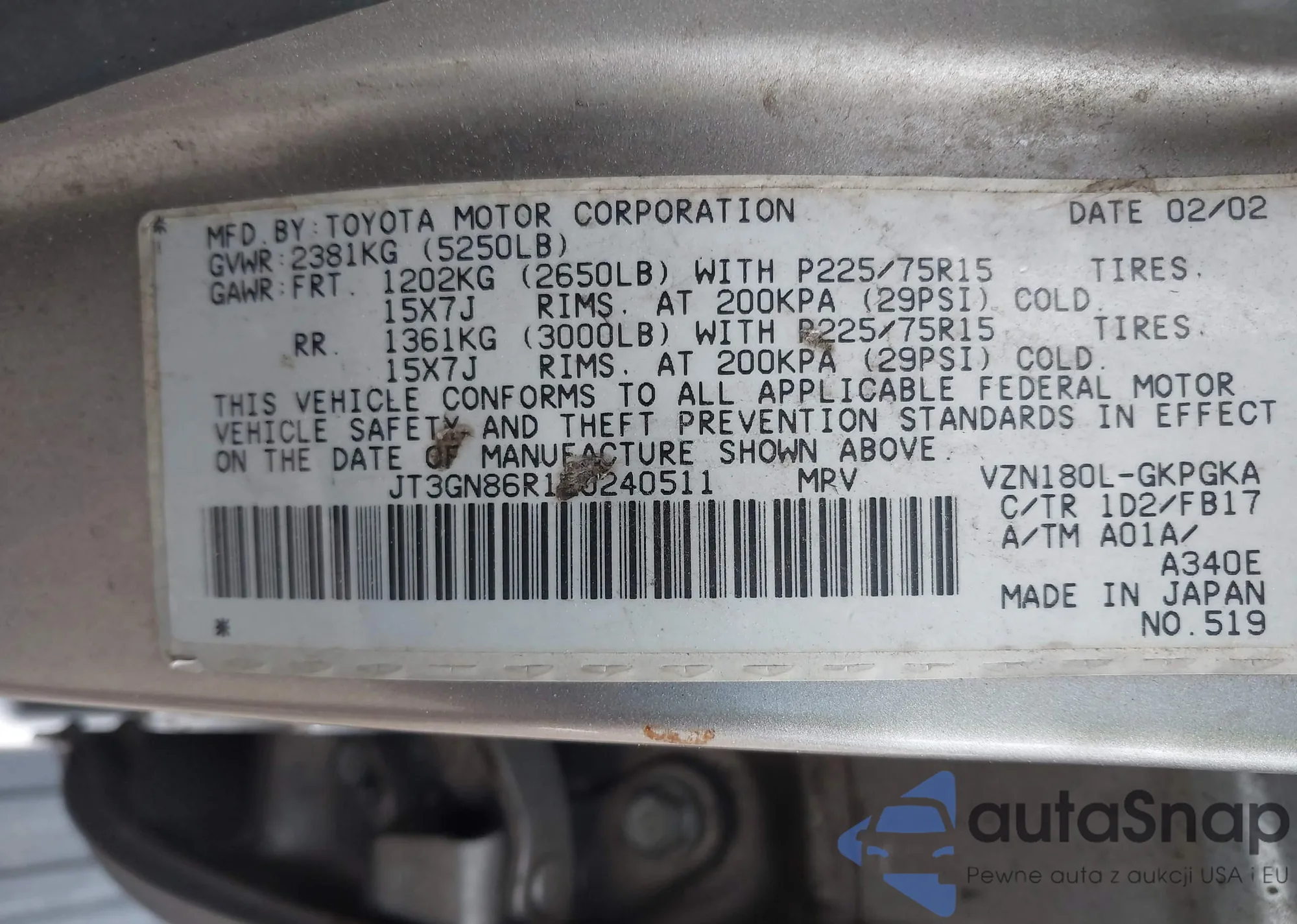LOT: 42194797 VIN: JT3GN86R120240511