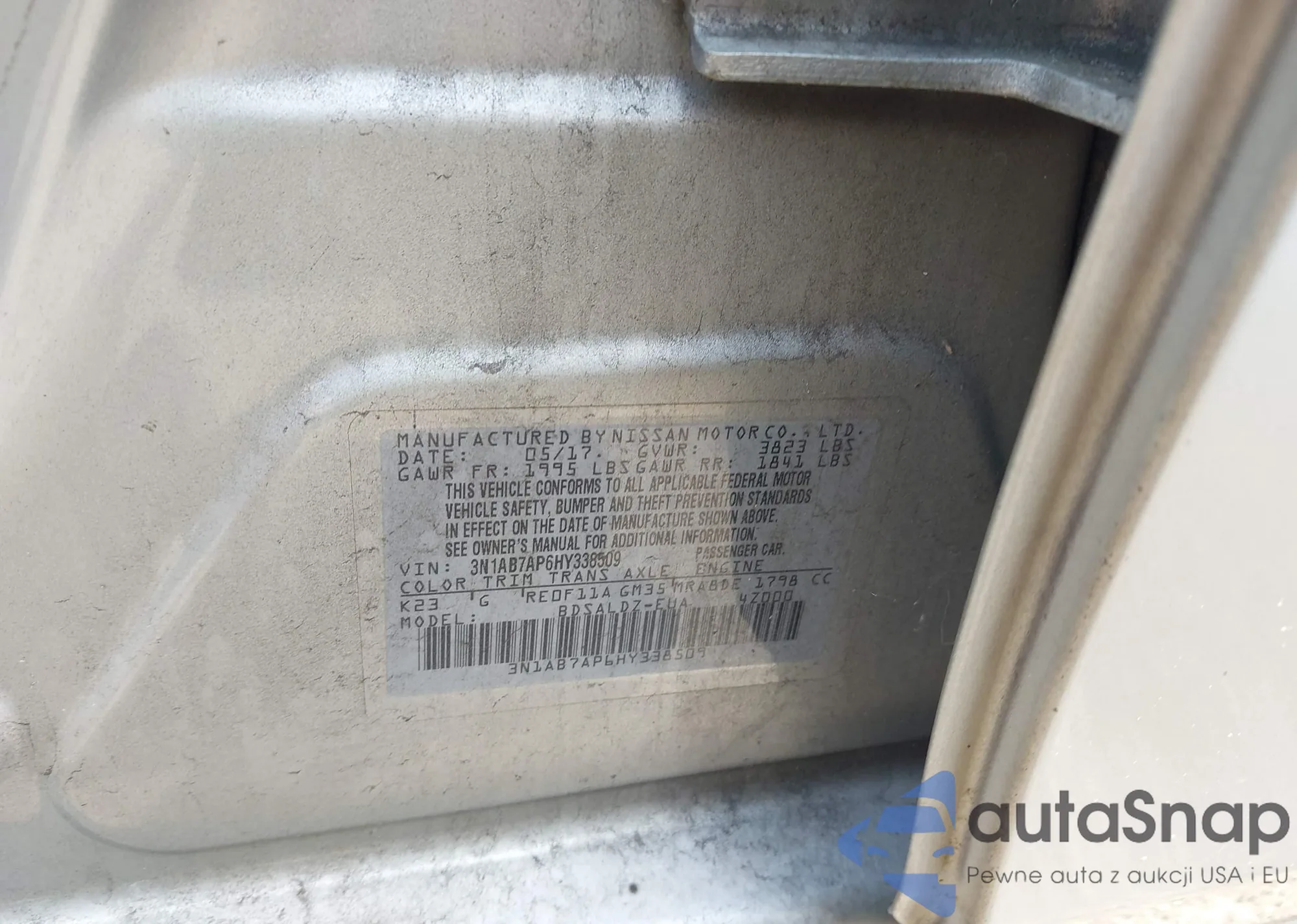 • VIN 1N4AL3AP8FN869892