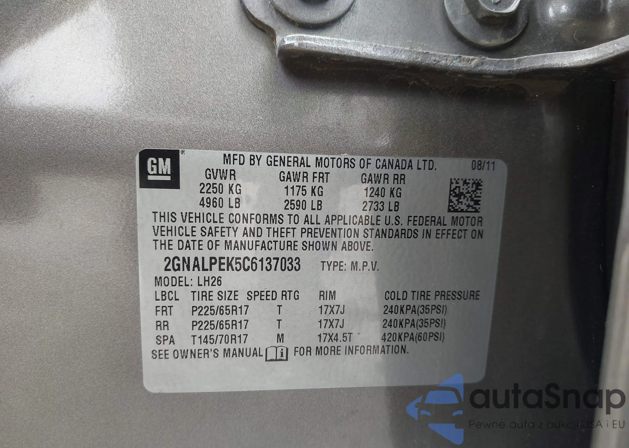 • VIN 2GNALPEK5C6137033