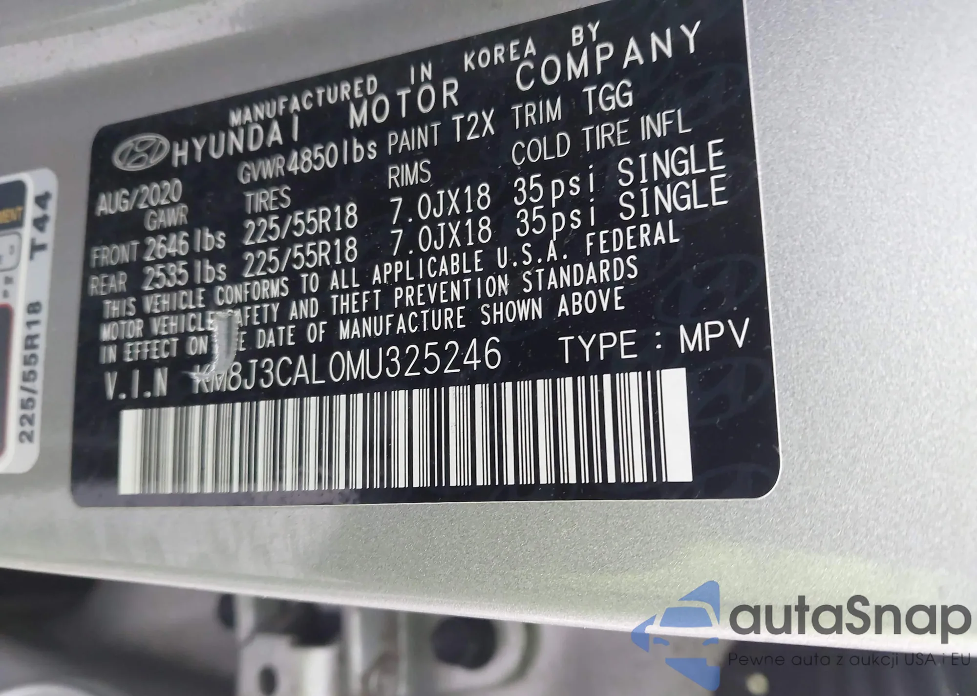 • VIN KM8J3CAL0MU325246