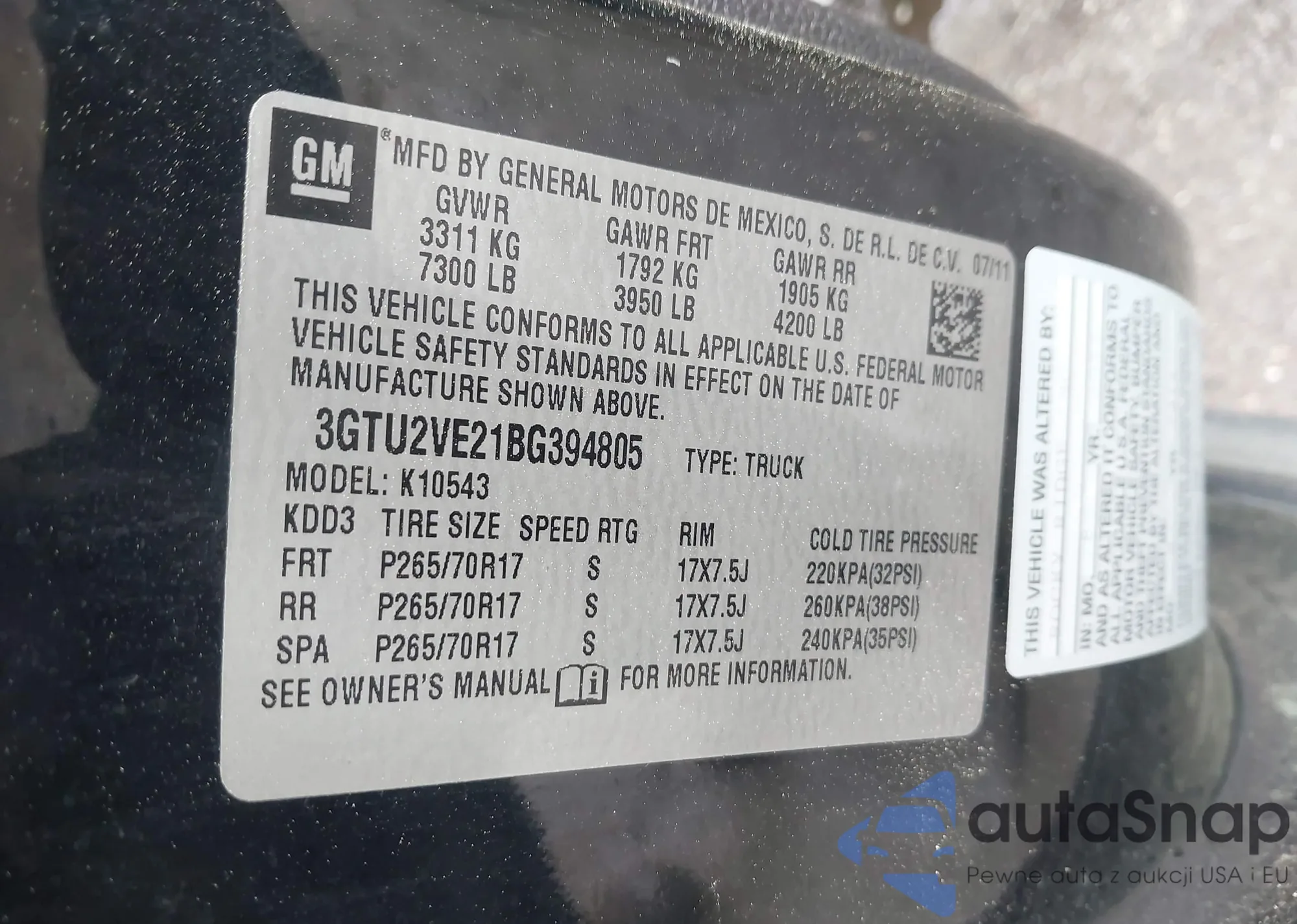 • VIN 3GTU2VE21BG394805