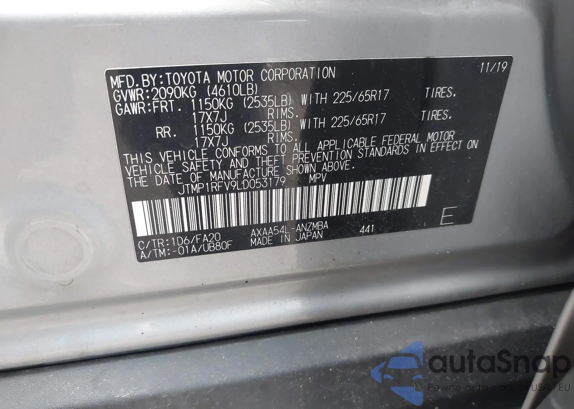 • VIN JTMP1RFV9LD053179