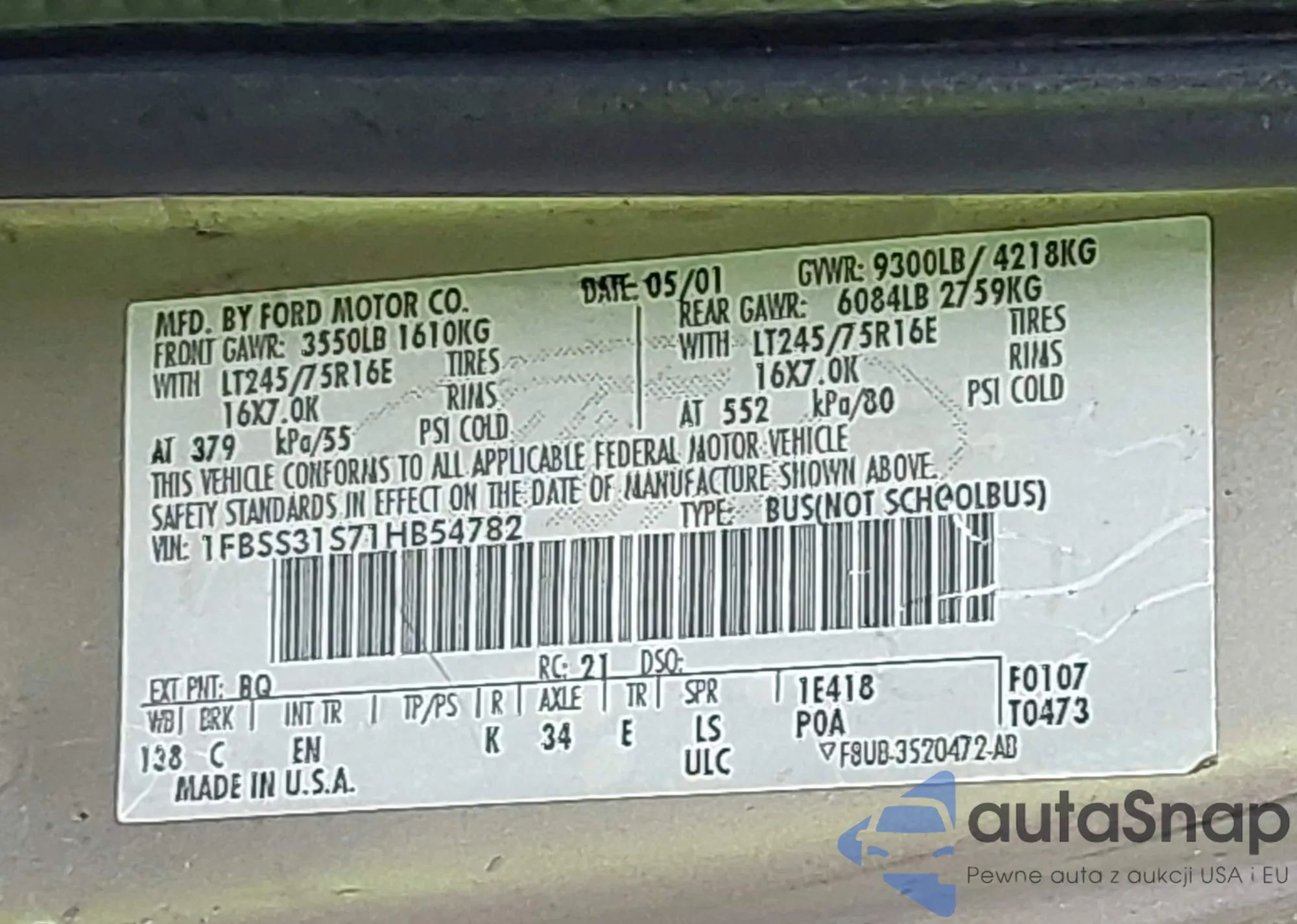 LOT: 42265547 VIN: 1FBSS31S71HB54782