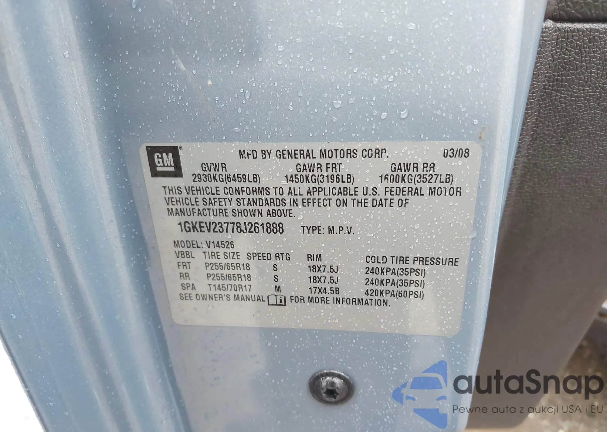 LOT: 42312437 VIN: 1GKEV23778J261888