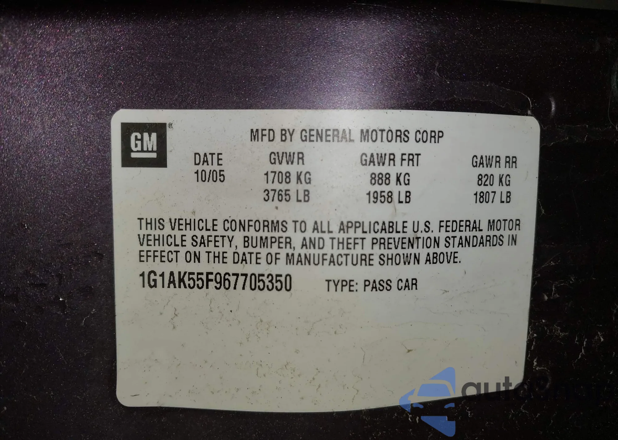 • VIN 1G1AK55F967705350