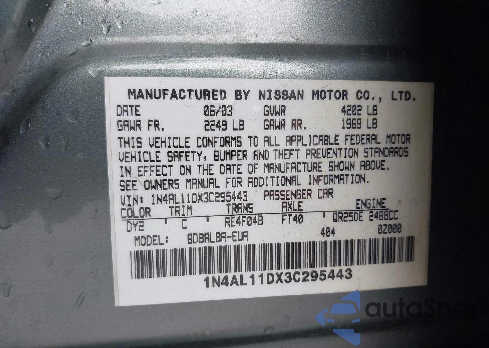 LOT: 42278216 VIN: 1N4AL11DX3C295443