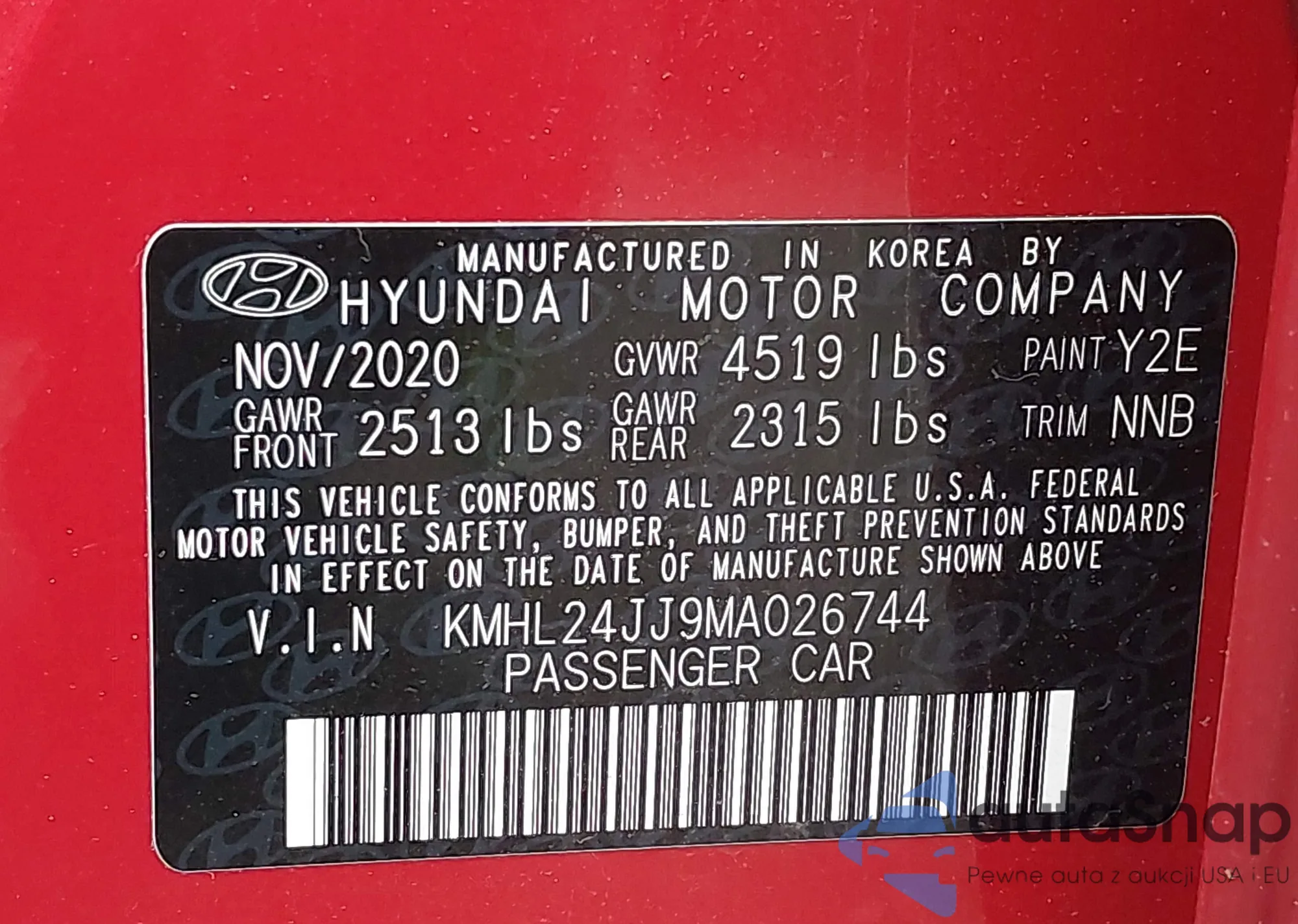 • VIN KMHL24JJ9MA026744