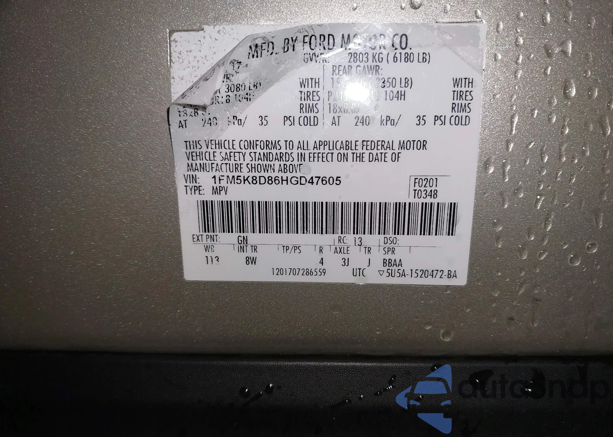 • VIN 4S3GKAT60H3607962