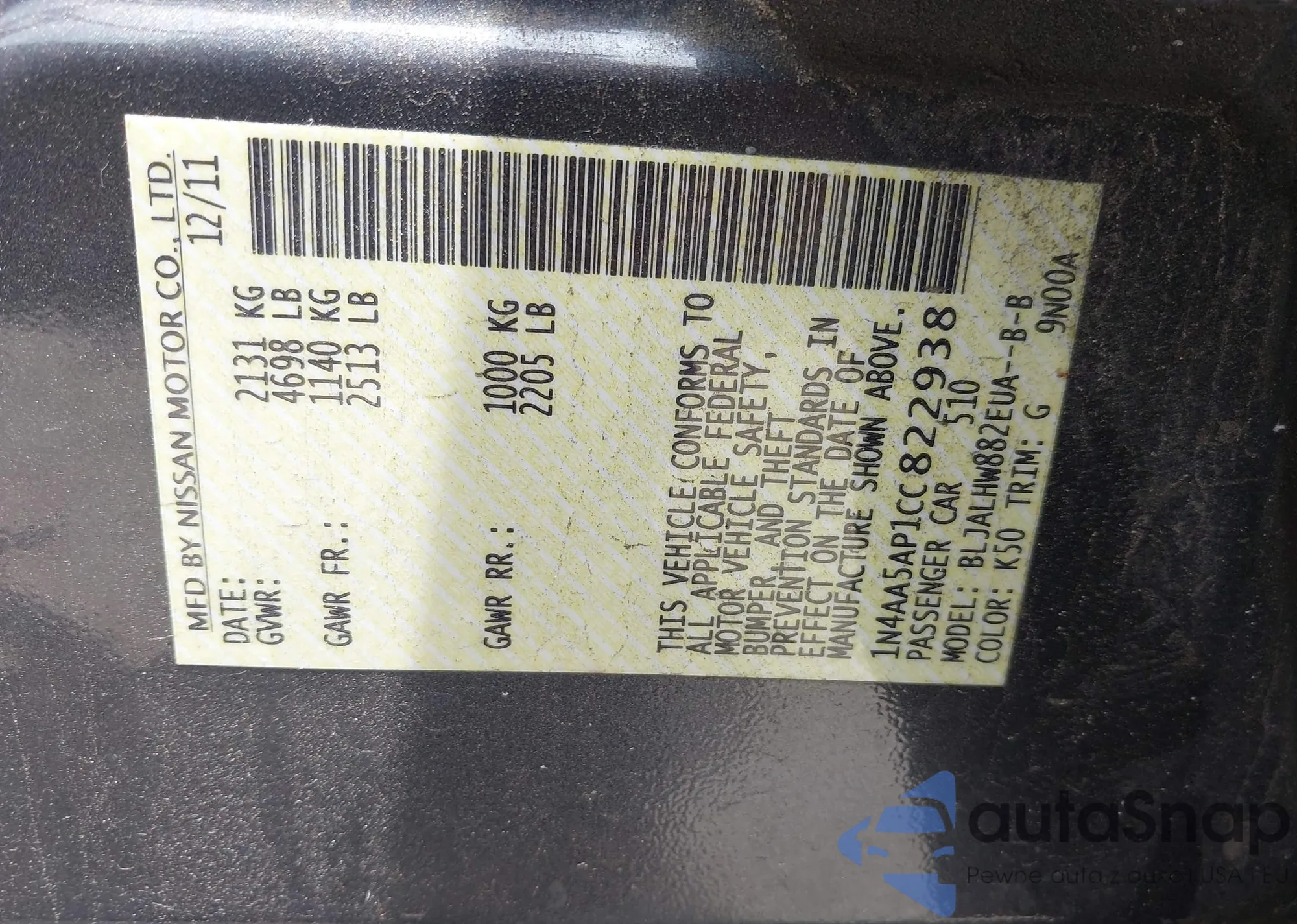 LOT: 42434145 VIN: 3N1AB6AP4AL622069