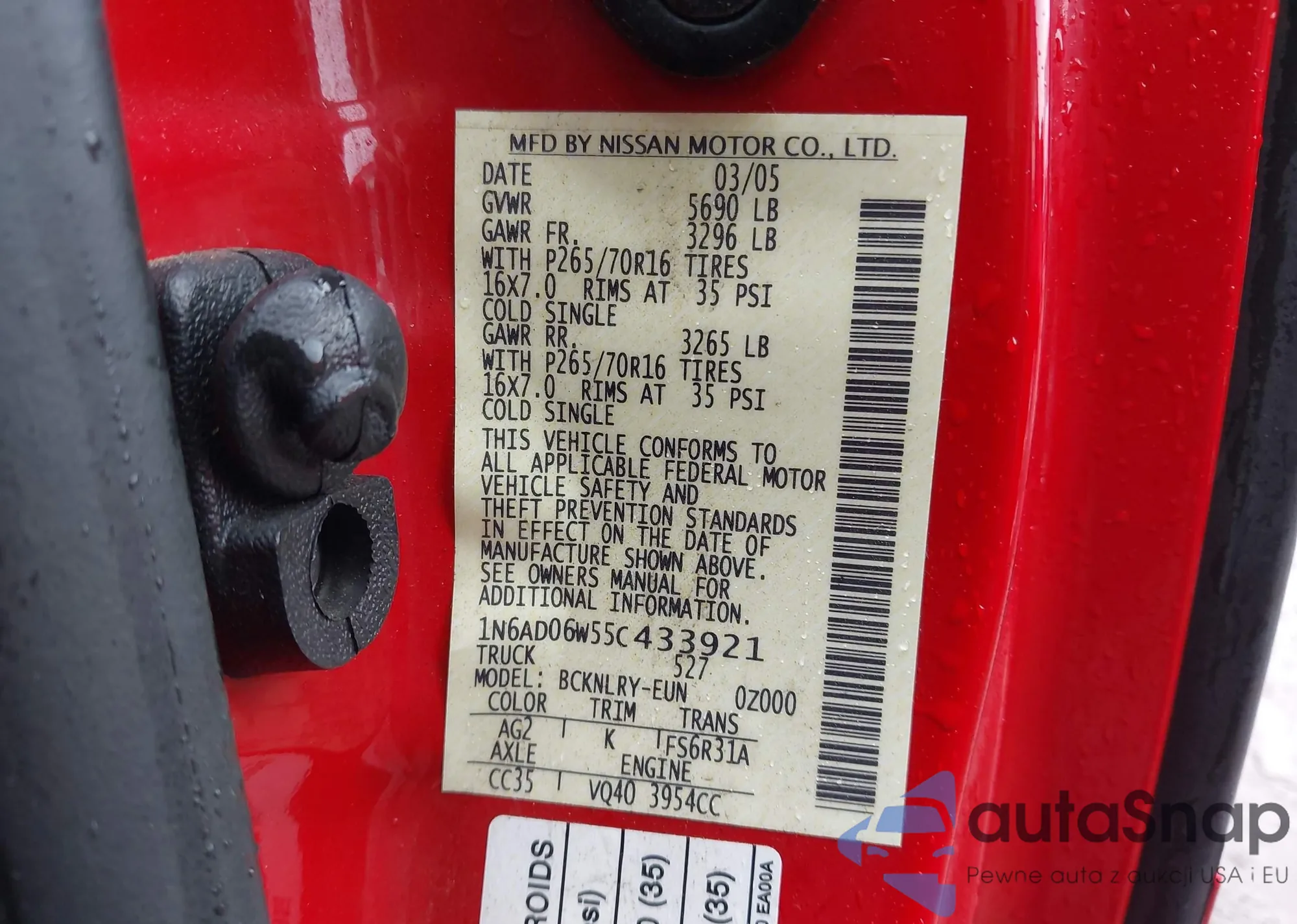 • VIN 1N6AD06W55C433921