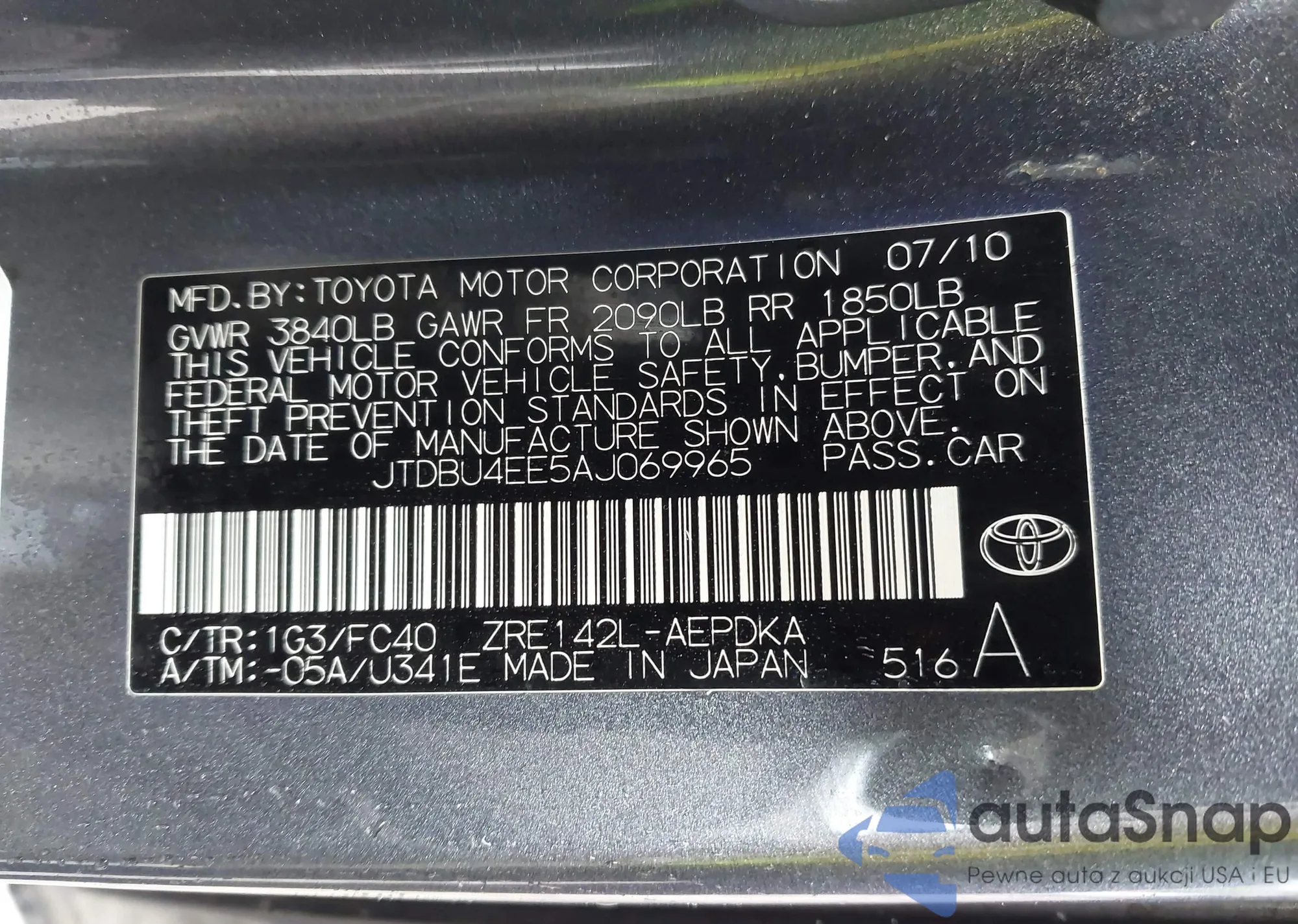 LOT: 42210634 VIN: JTDBU4EE5AJ069965