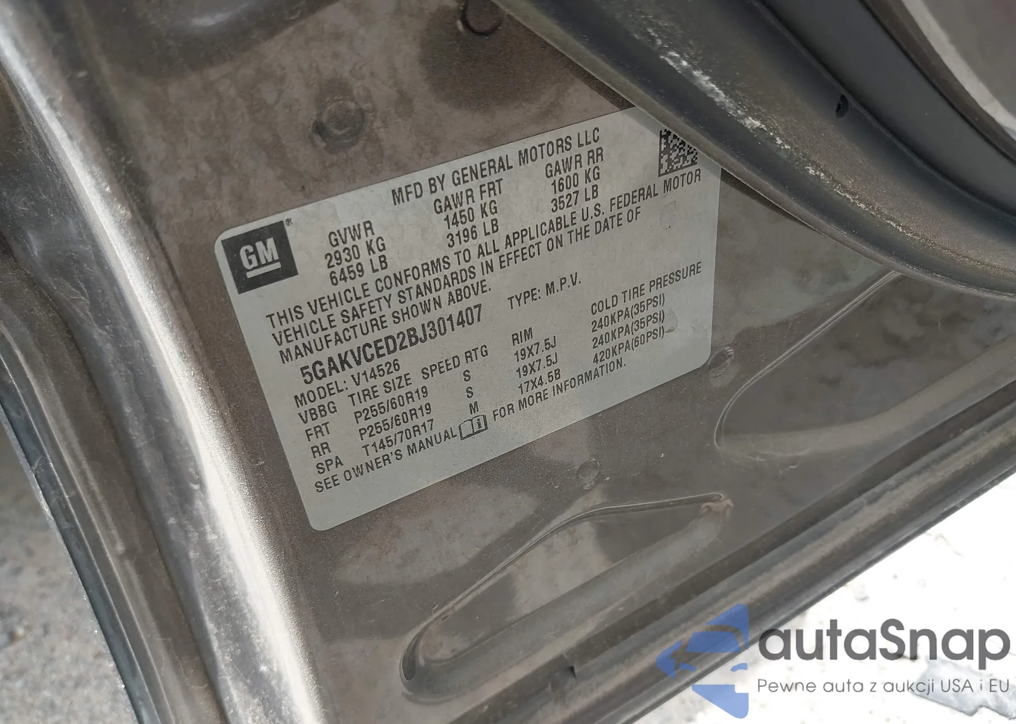 • VIN 5GAKVCED2BJ301407
