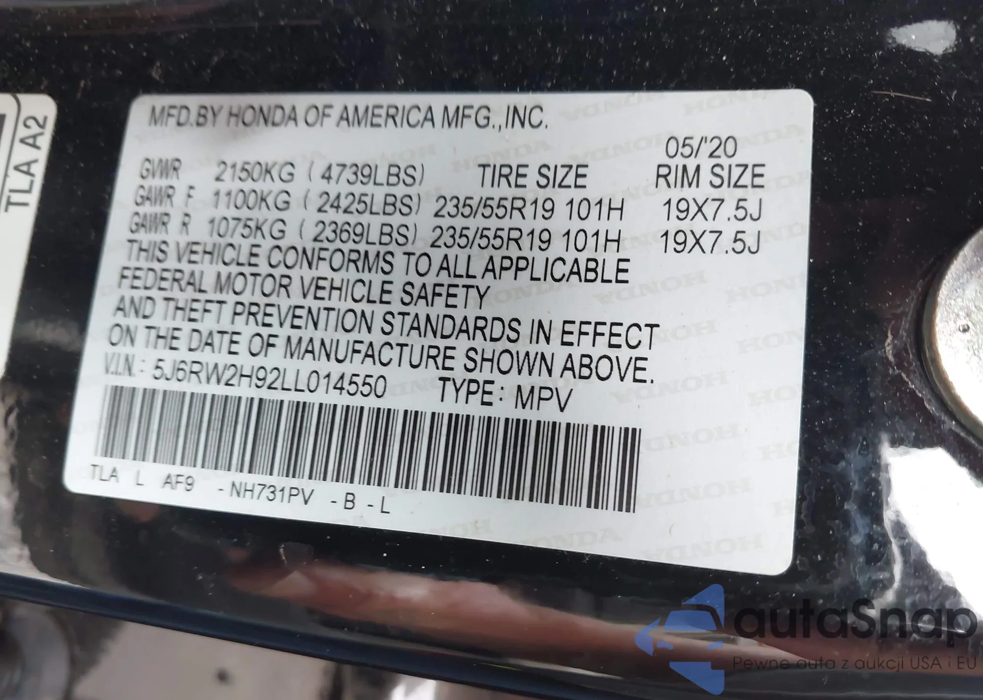 • VIN 2HKRW1H59MH413474