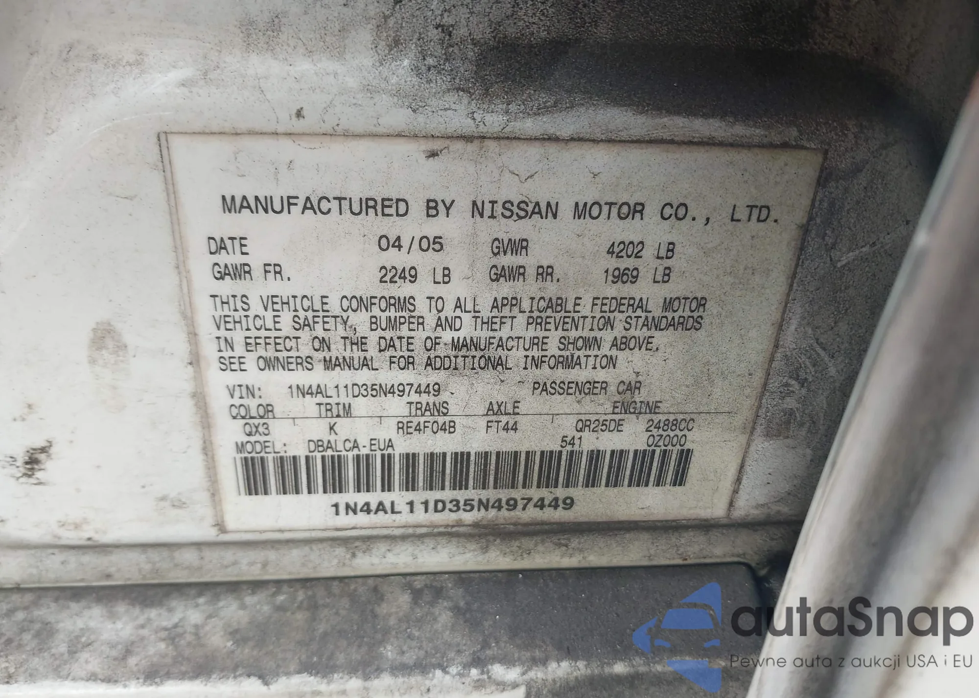 LOT: 42472281 VIN: 1N4AL11D35N497449