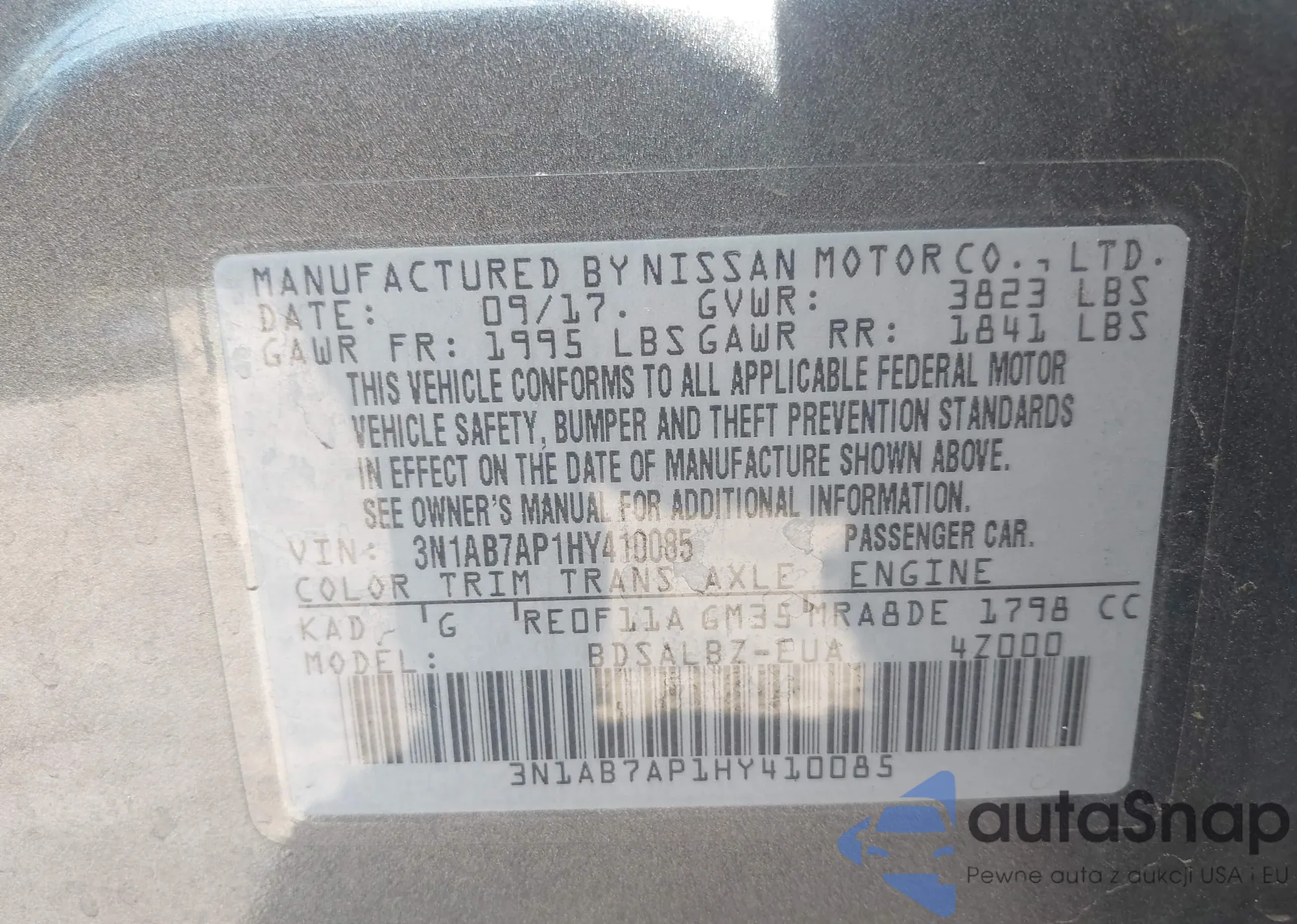 • VIN 3N1AB7AP1HY410085