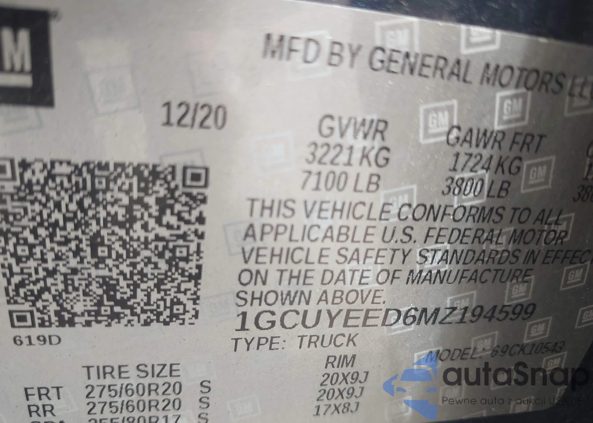 LOT: 42214500 VIN: 1GCUYEED6MZ194599