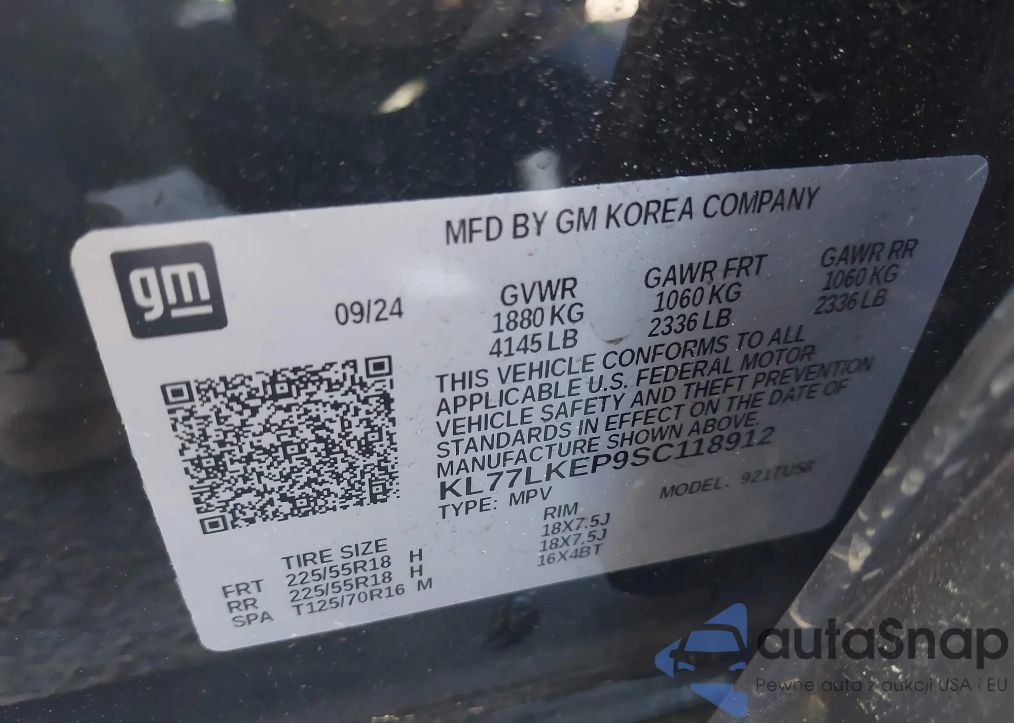 • VIN KL77LKEP9SC118912
