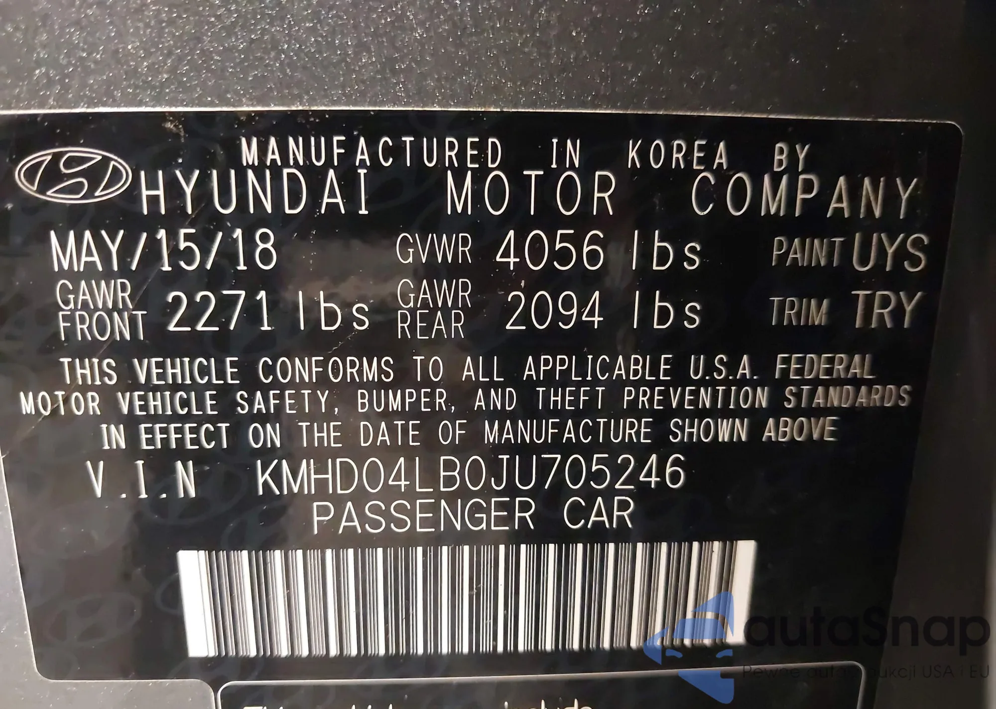 • VIN KMHD04LB0JU705246