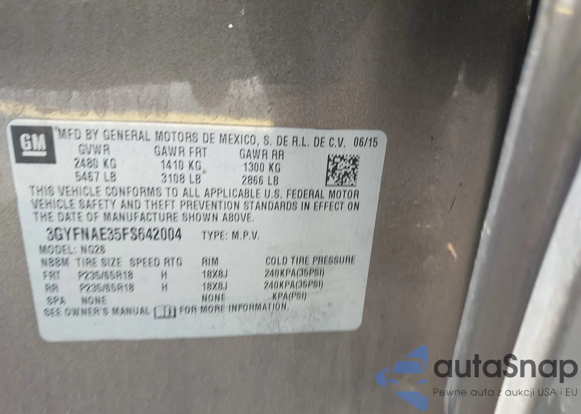 LOT: 42263470 VIN: 3GYFNAE35FS642004
