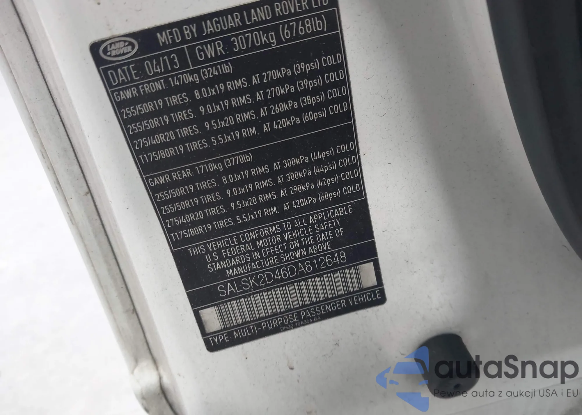 LOT: 42377903 VIN: SALSK2D46DA812648