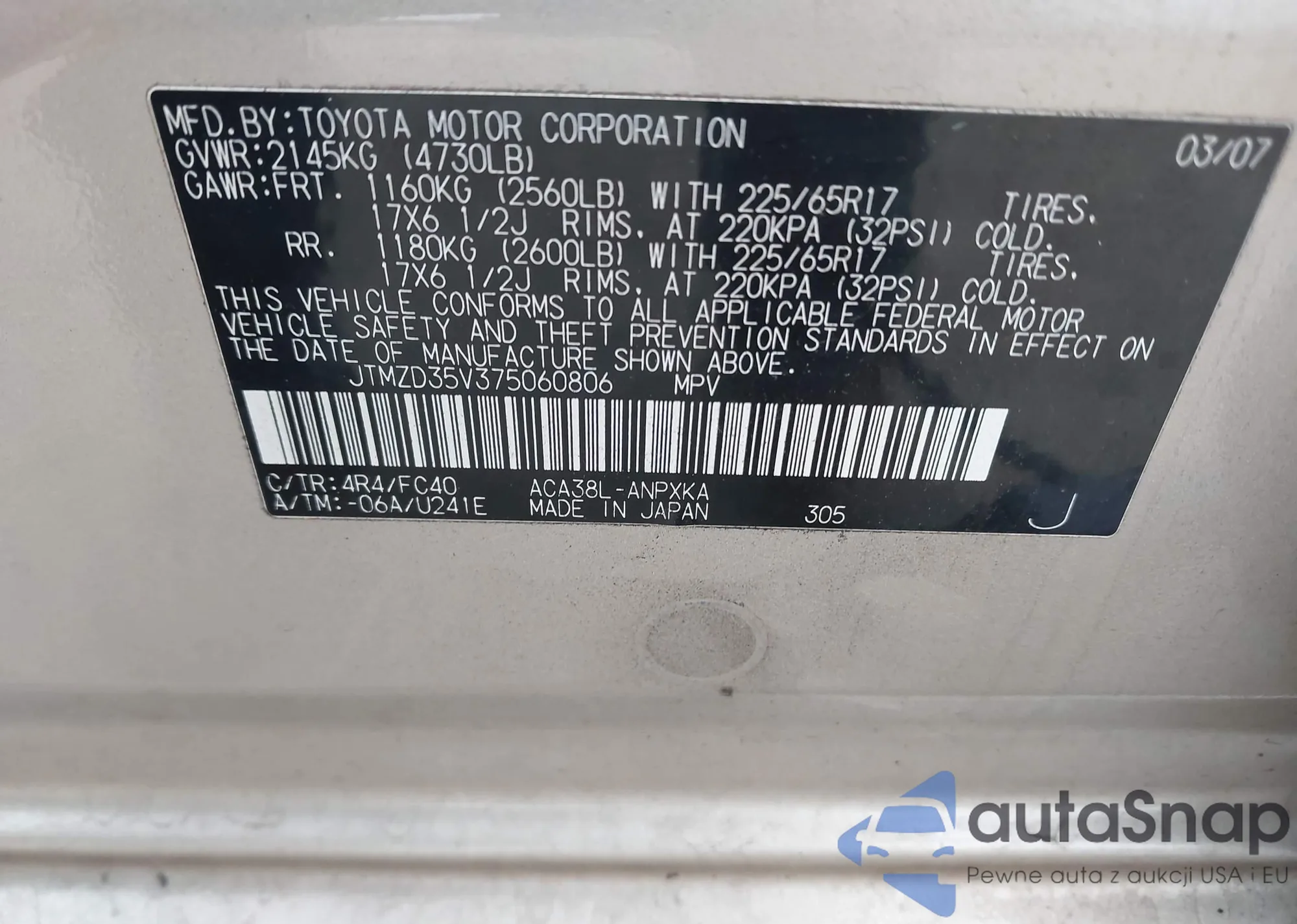 • VIN JA4J24A55KZ037103