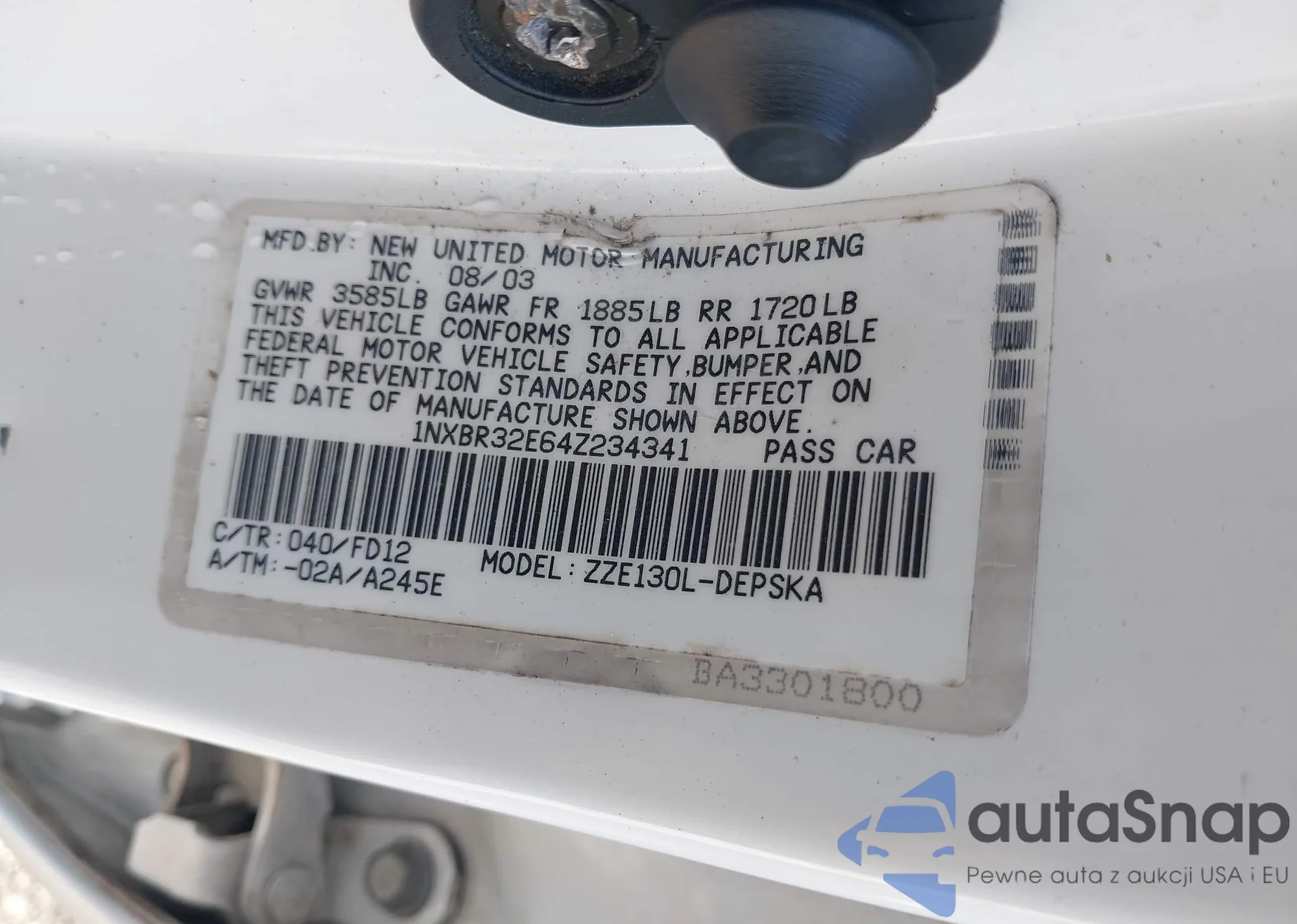 LOT: 41932133 VIN: 1NXBR32E64Z234341