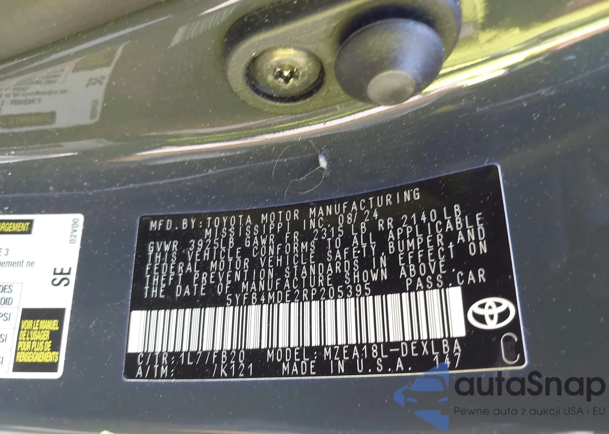 • VIN 5YFB4MDE2RP205395