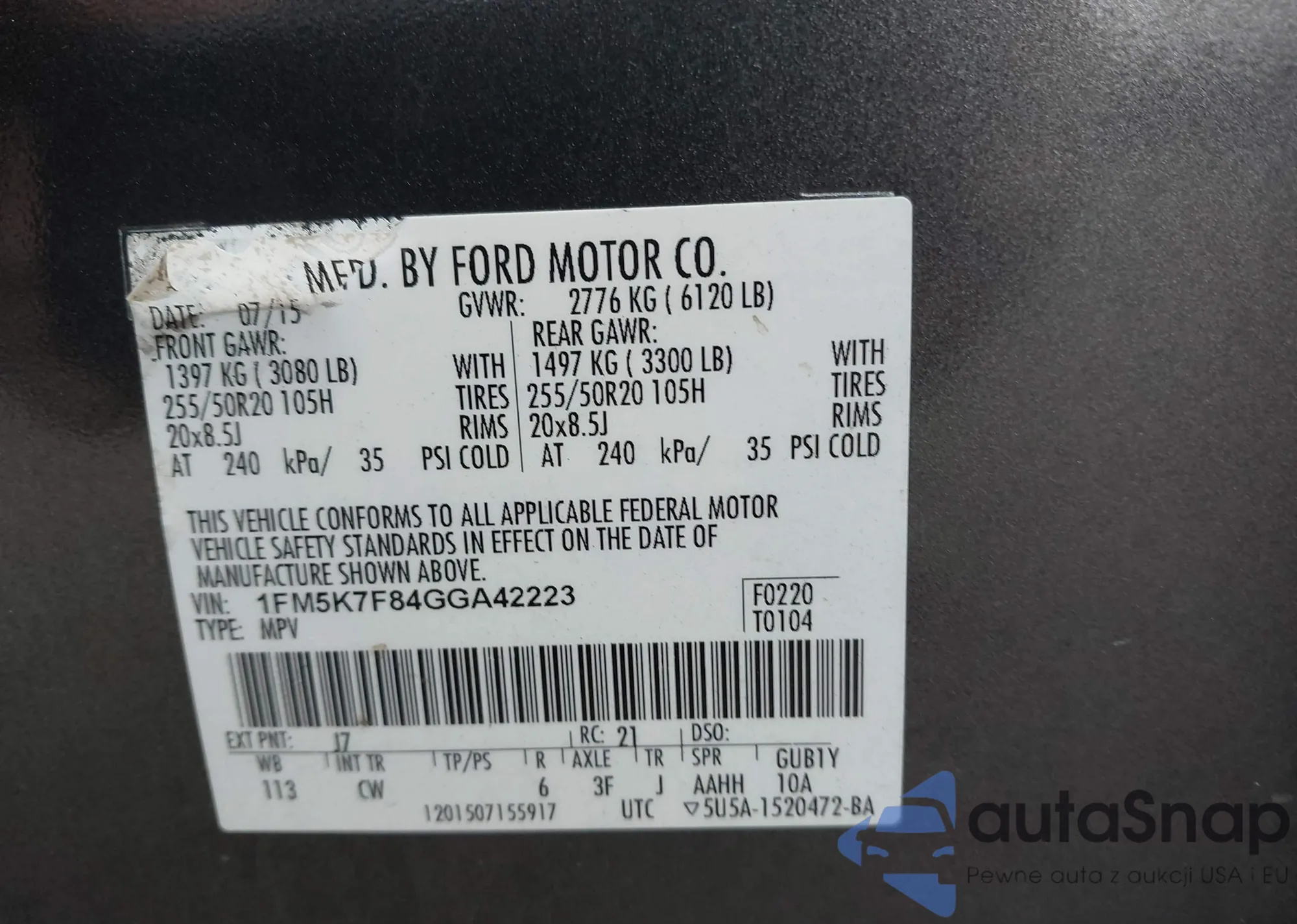 • VIN 1FM5K7F84GGA42223