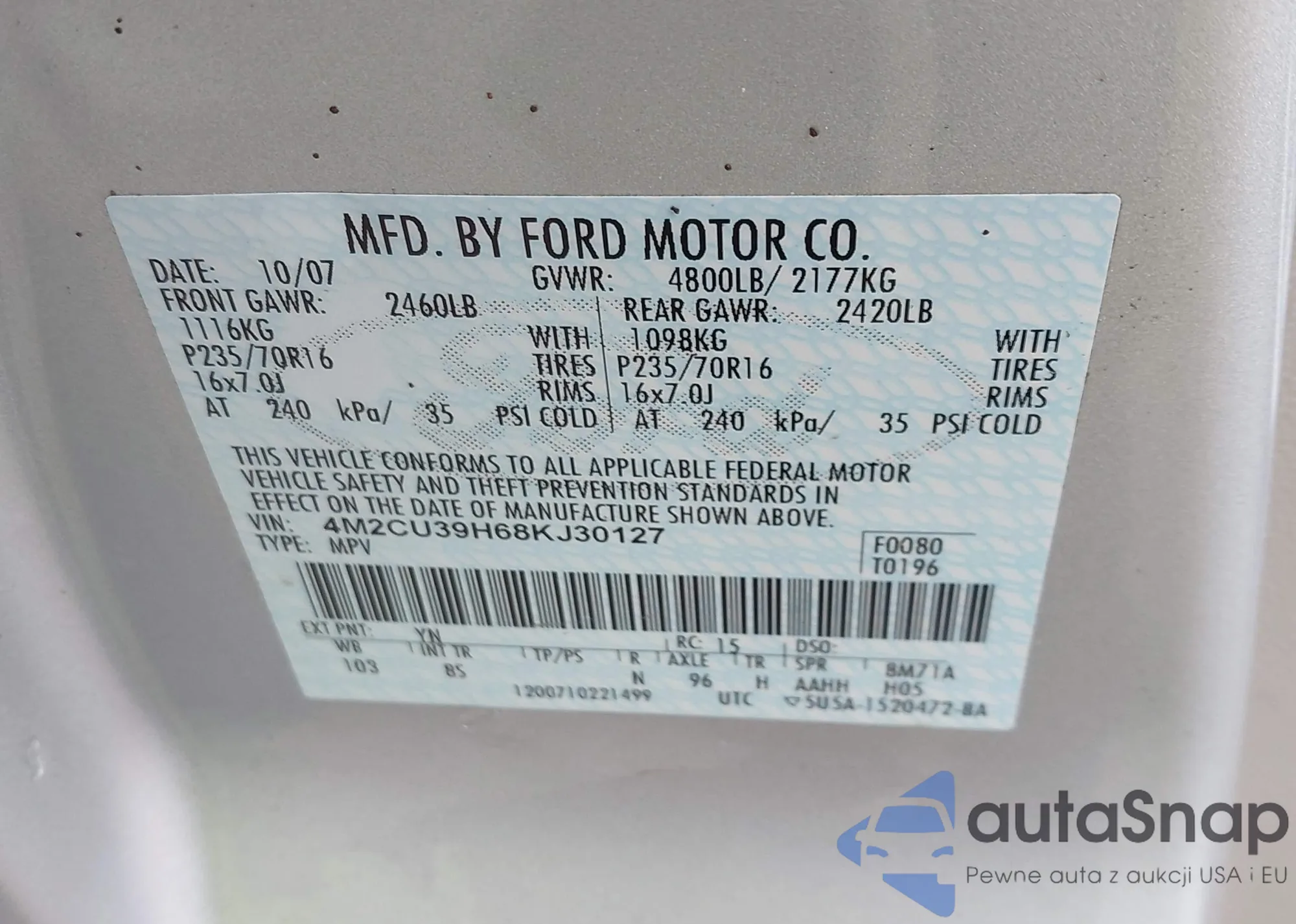 LOT: 42324795 VIN: 1FAHP34N07W362445