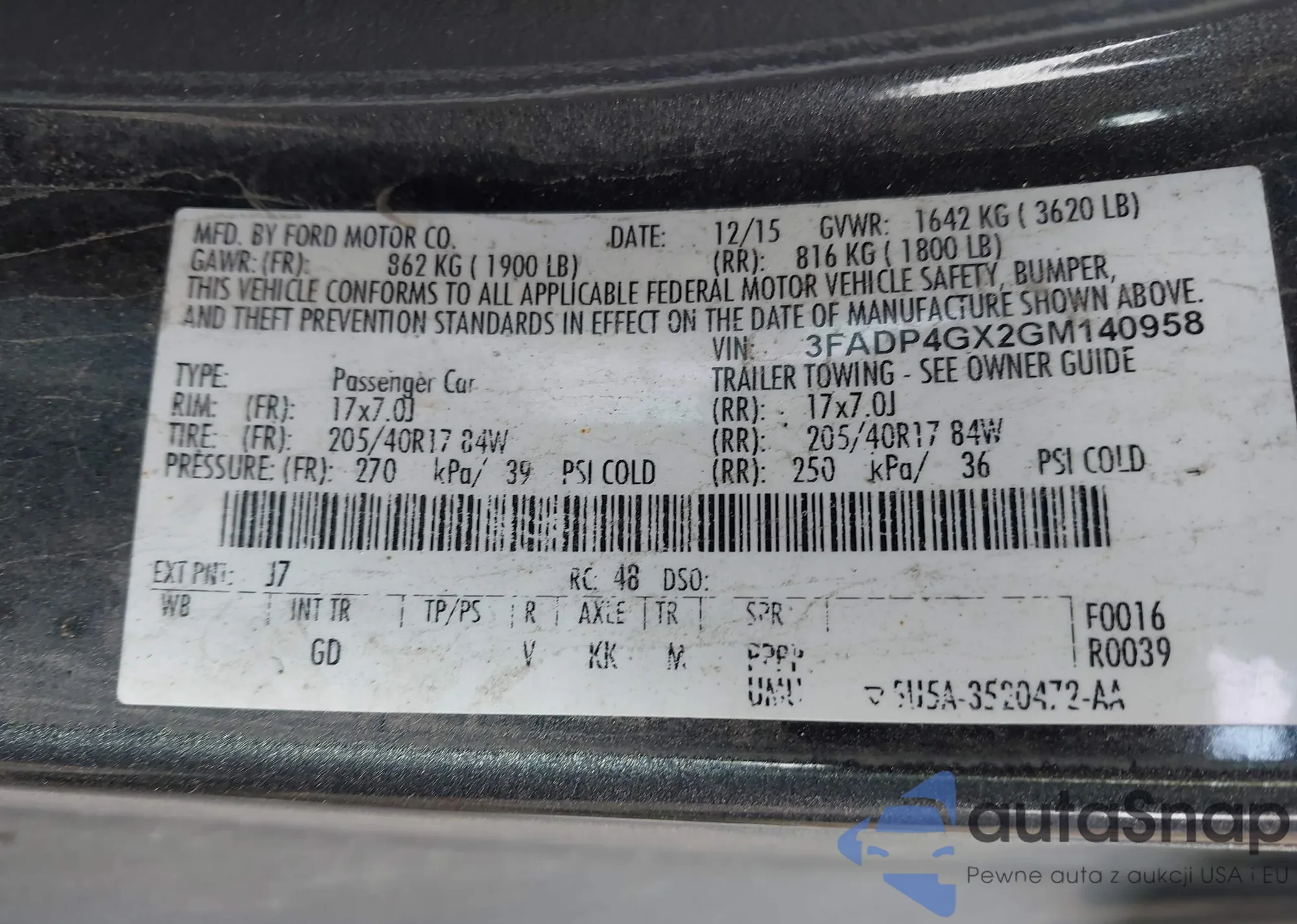 • VIN 3FADP4GX2GM140958