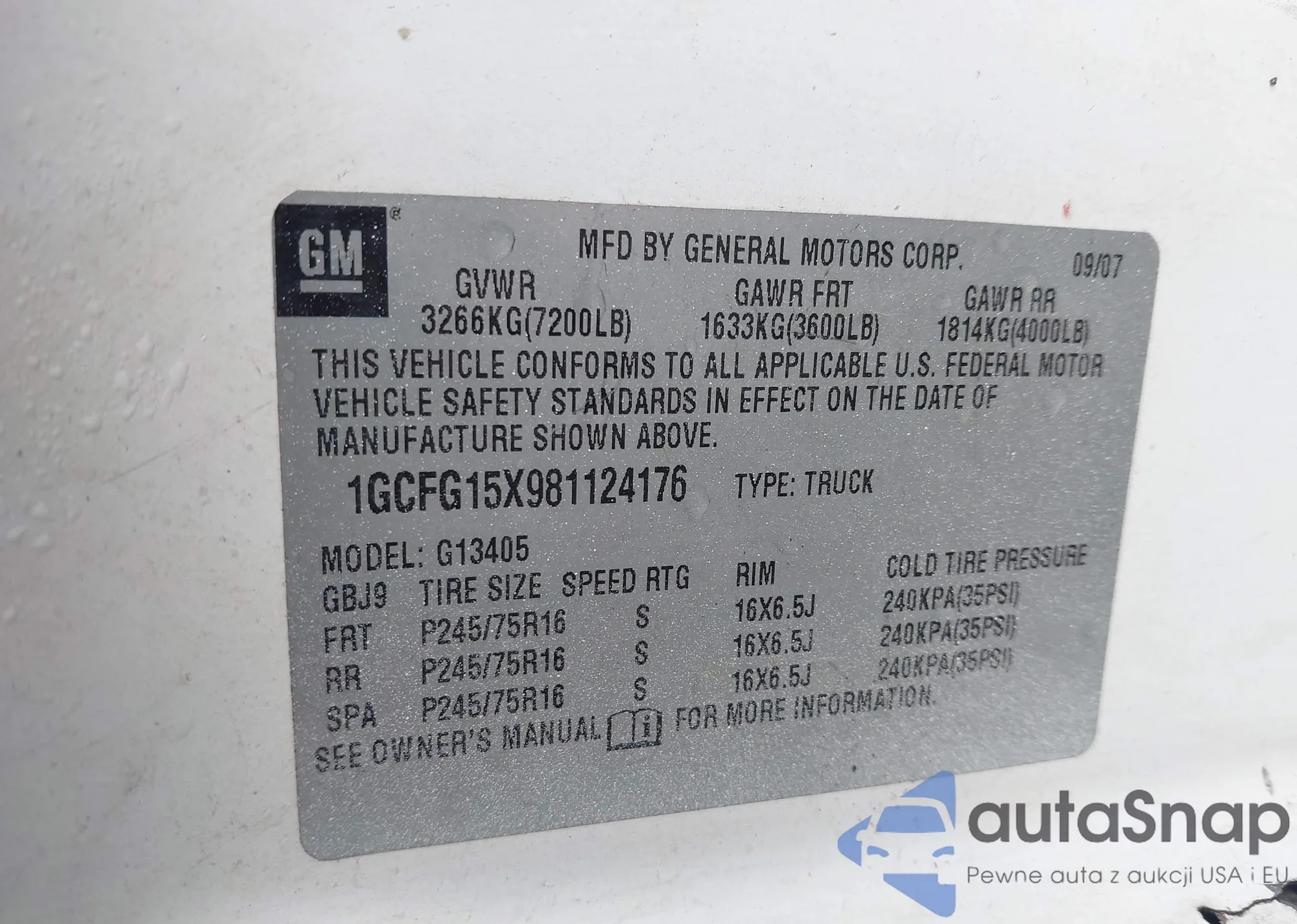 LOT: 42276837 VIN: 1GCFG15X981124176