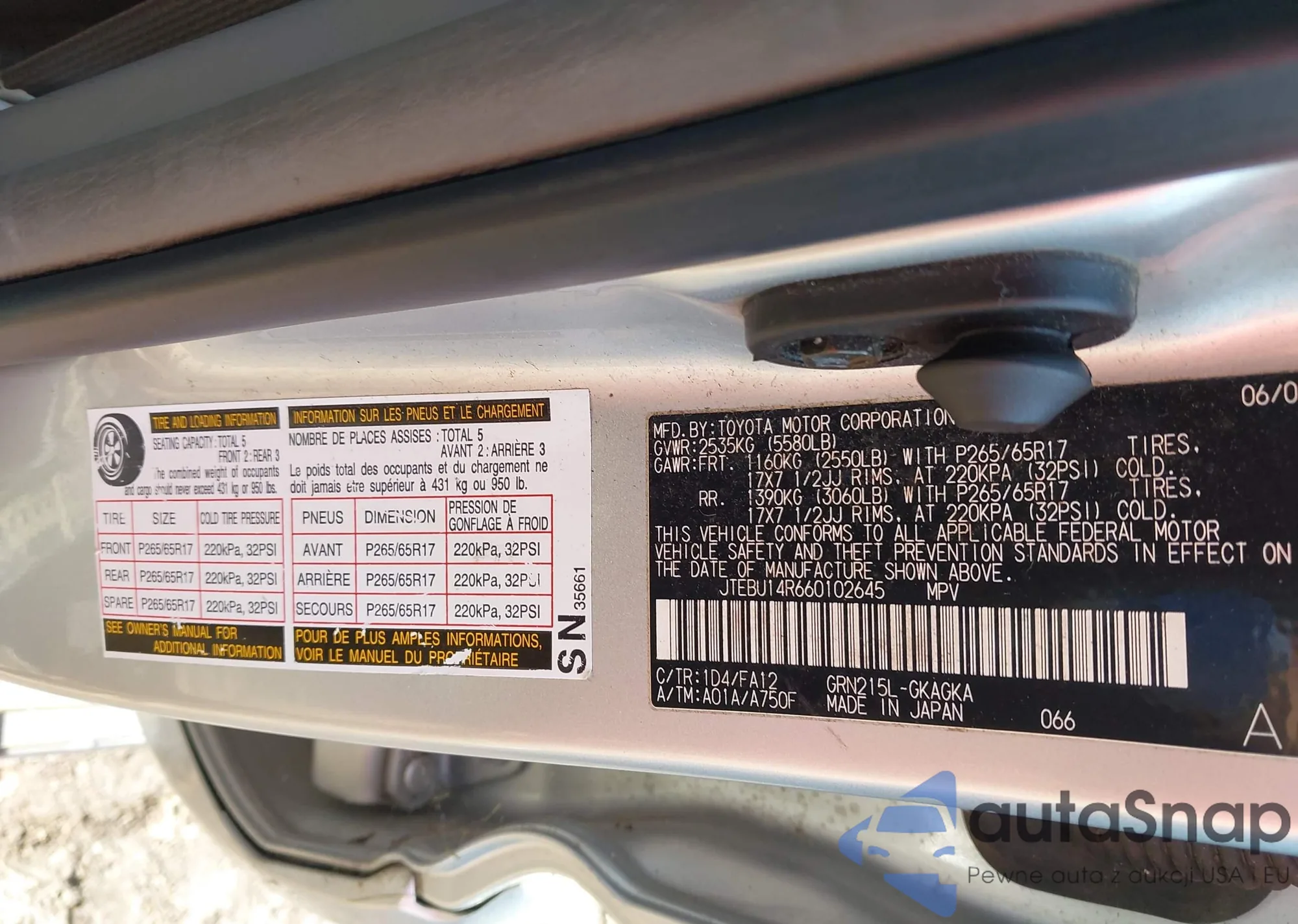 LOT: 42170383 VIN: 5TFAX5GN8KX148101