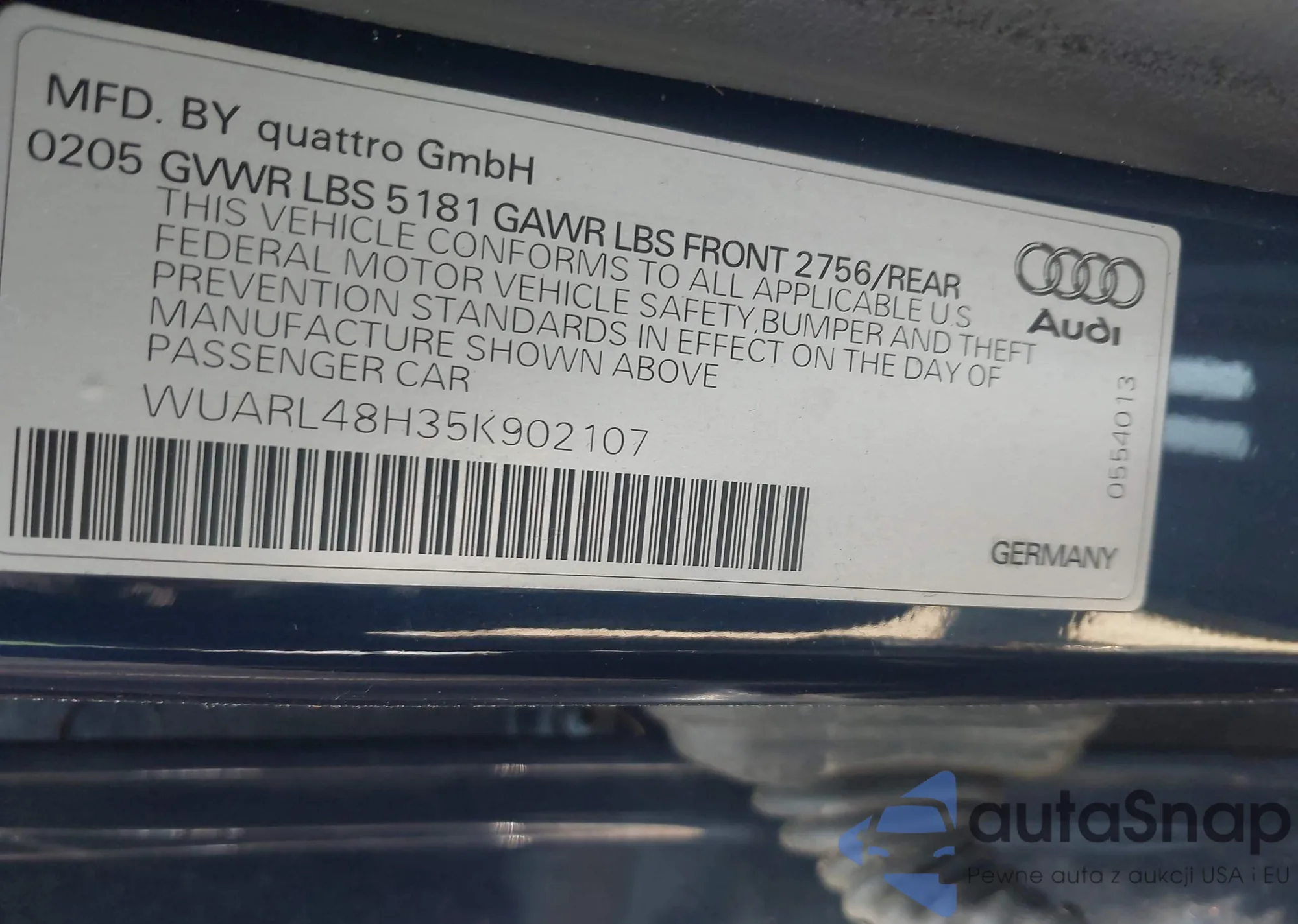 • VIN 5TFAX5GN8KX148101