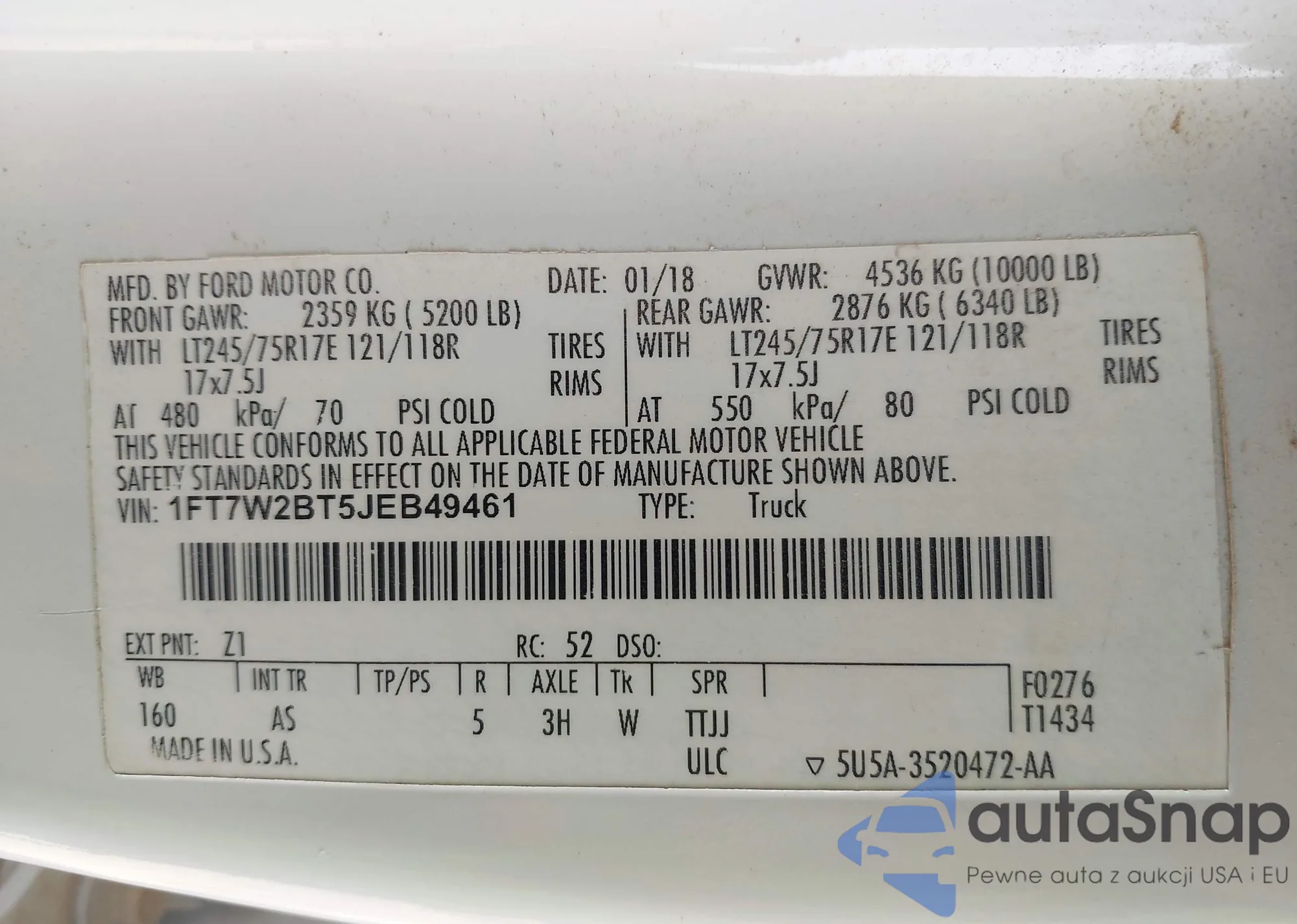 • VIN 1FT7W2BT5JEB49461