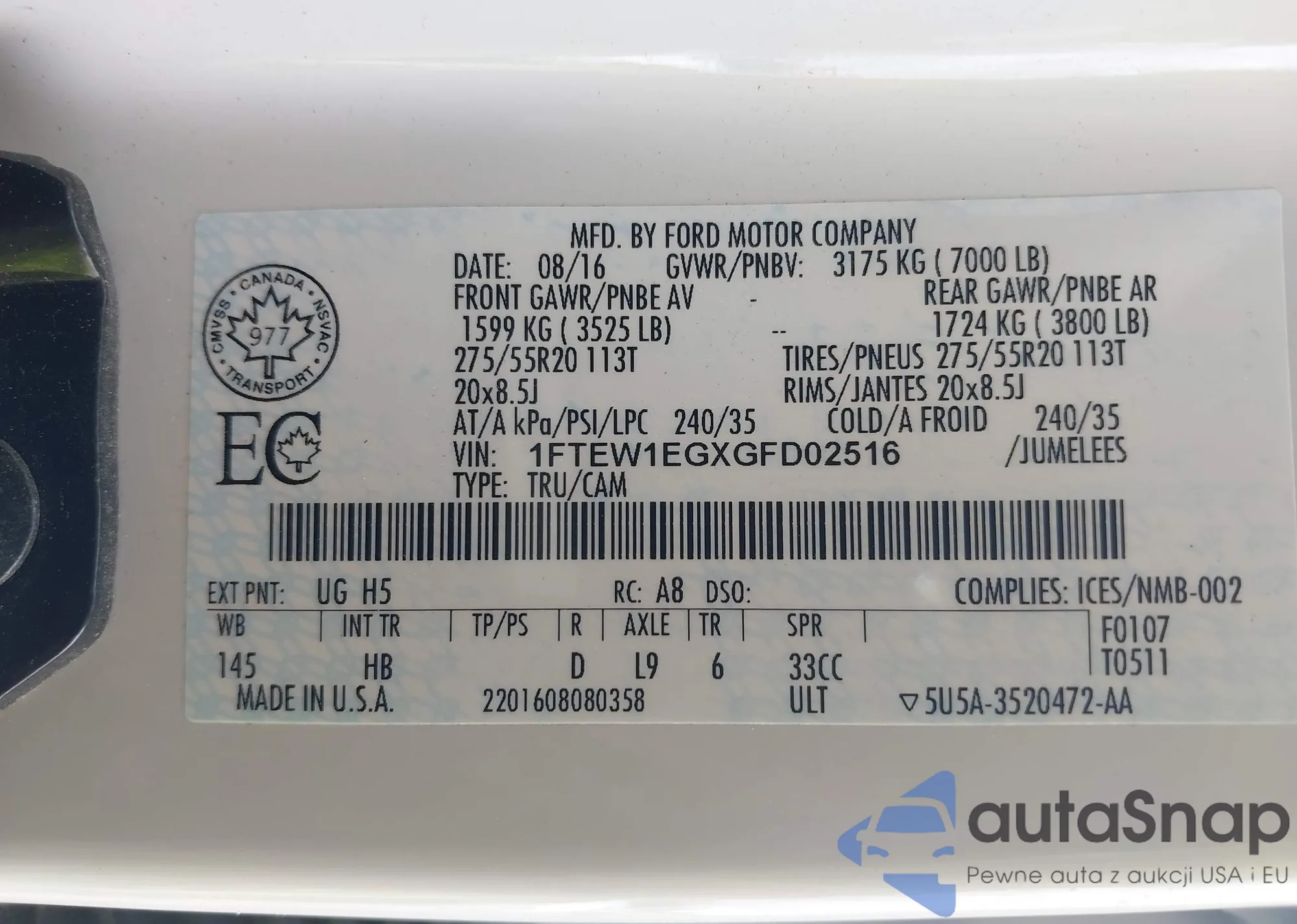 LOT: 42157035 VIN: 1FTEW1EGXGFD02516