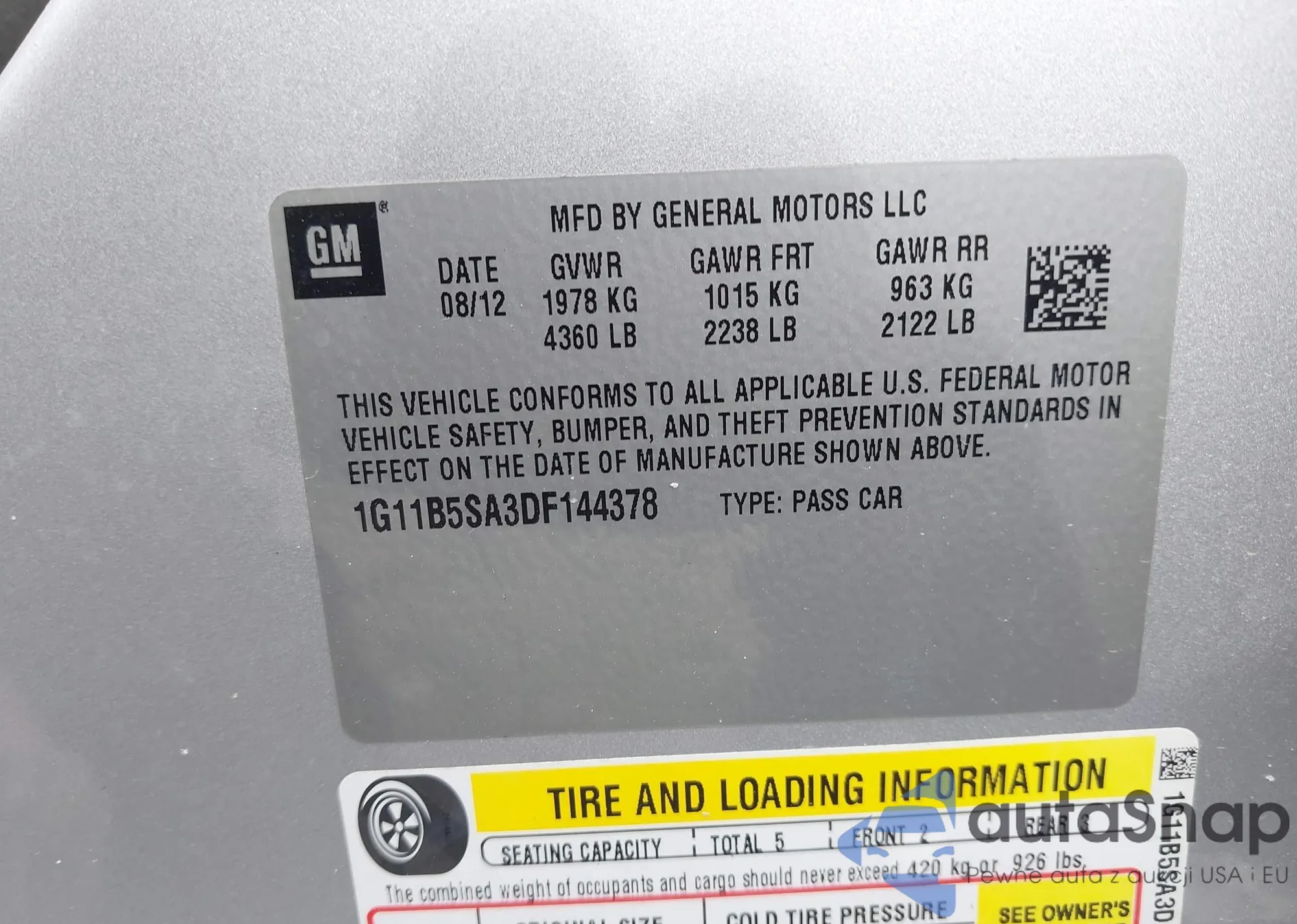 • VIN 1G11B5SA3DF144378