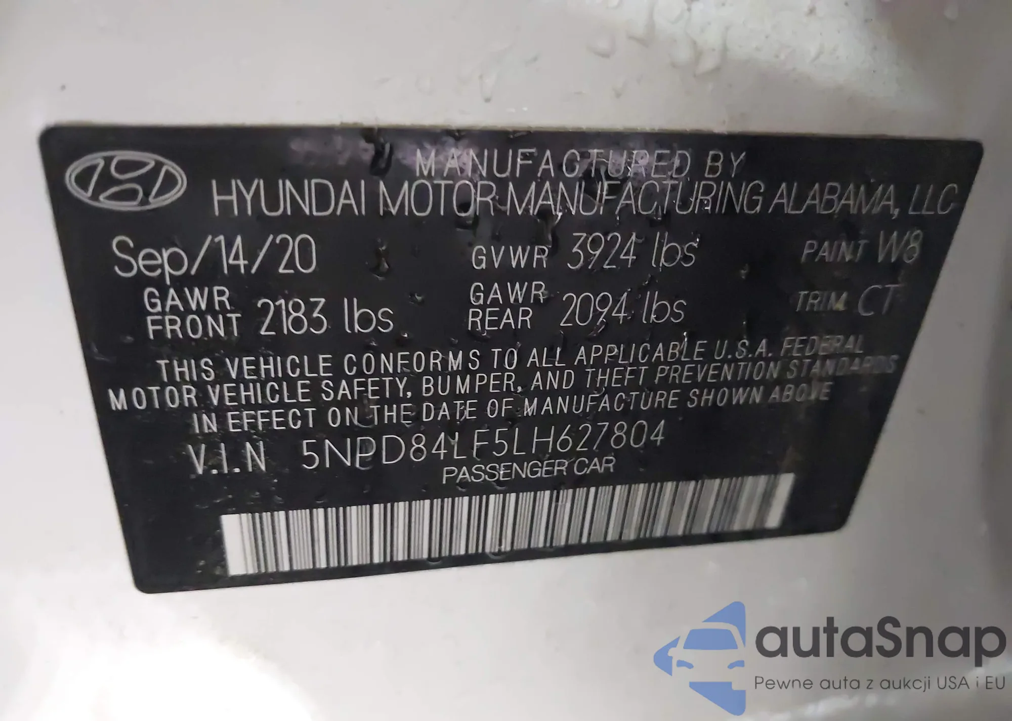 • VIN 5NPD84LF5LH627804