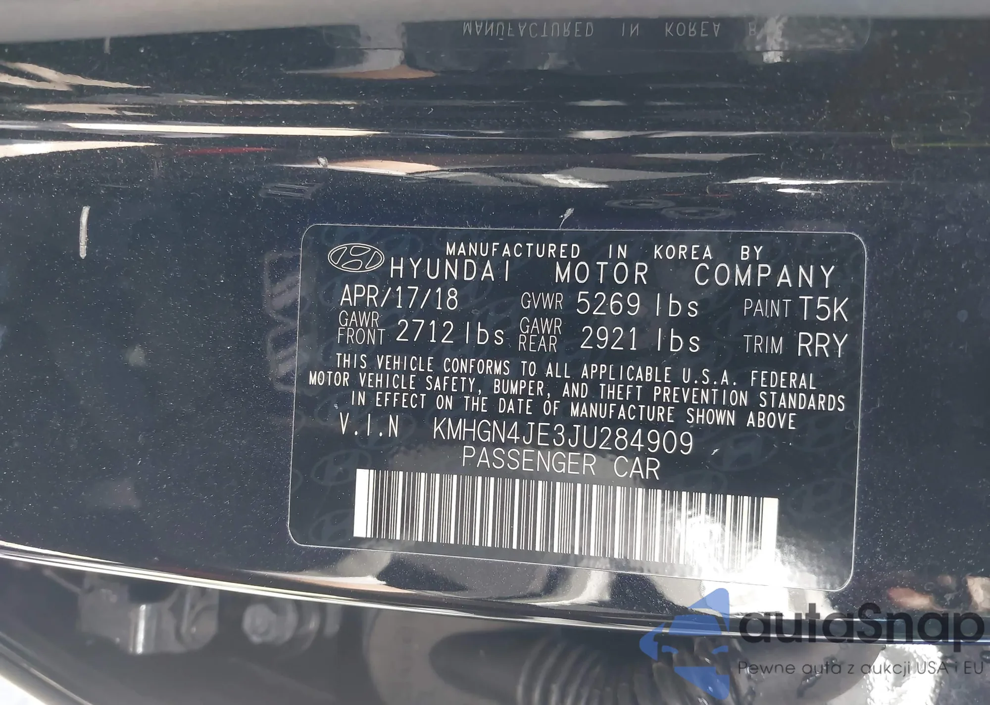 LOT: 42188611 VIN: KMHGN4JE3JU284909