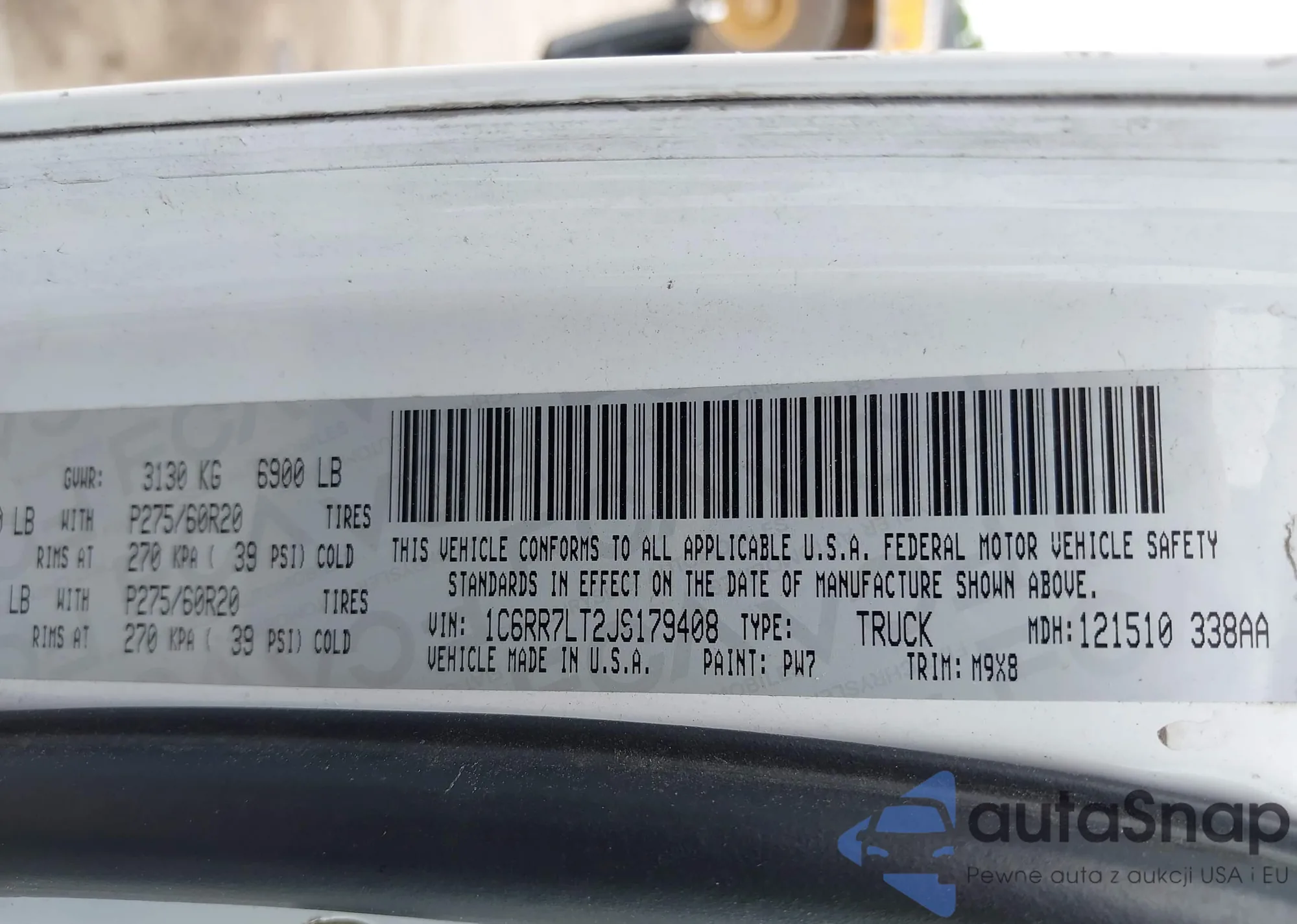 • VIN 1C6RR7GG0JS120371