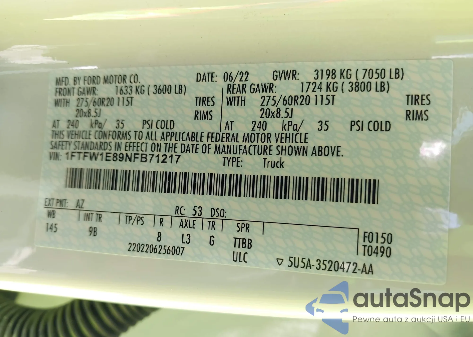 • VIN 1FTFW1E89NFB71217