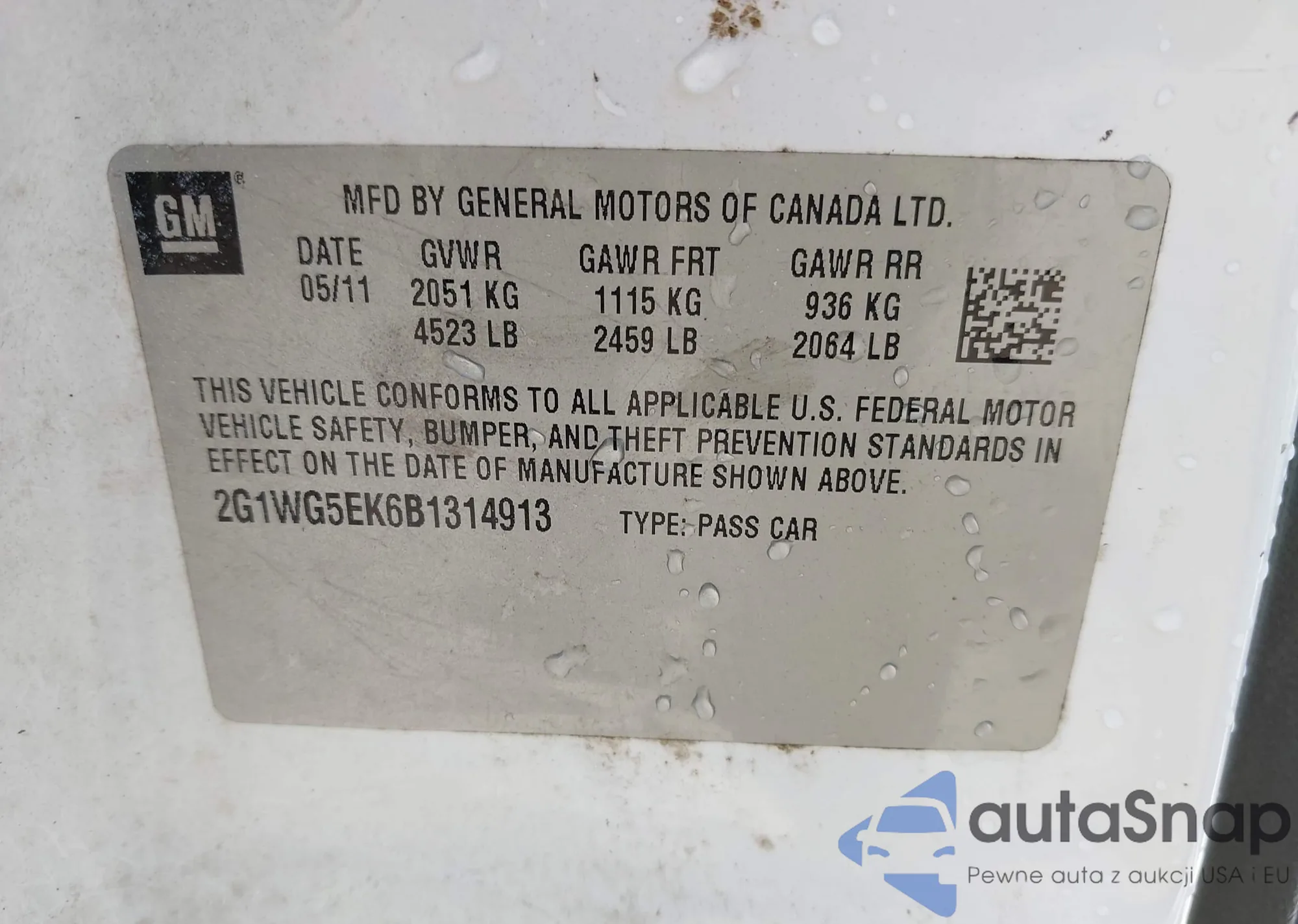 • VIN 2G1WG5EK6B1314913