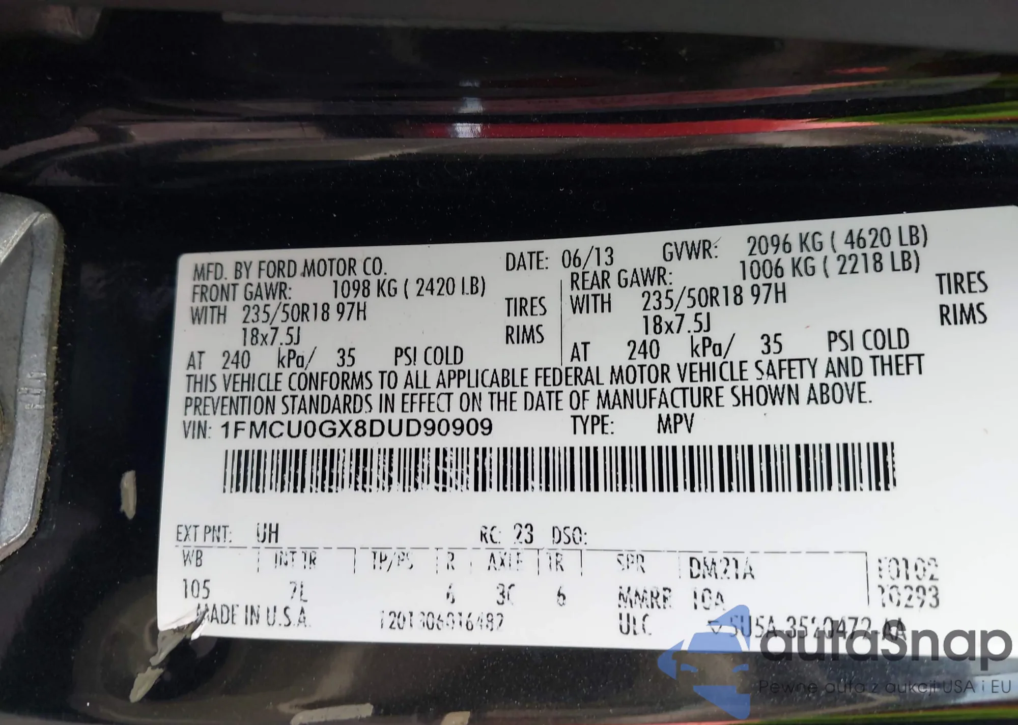• VIN 1FMCU0GX8DUD90909