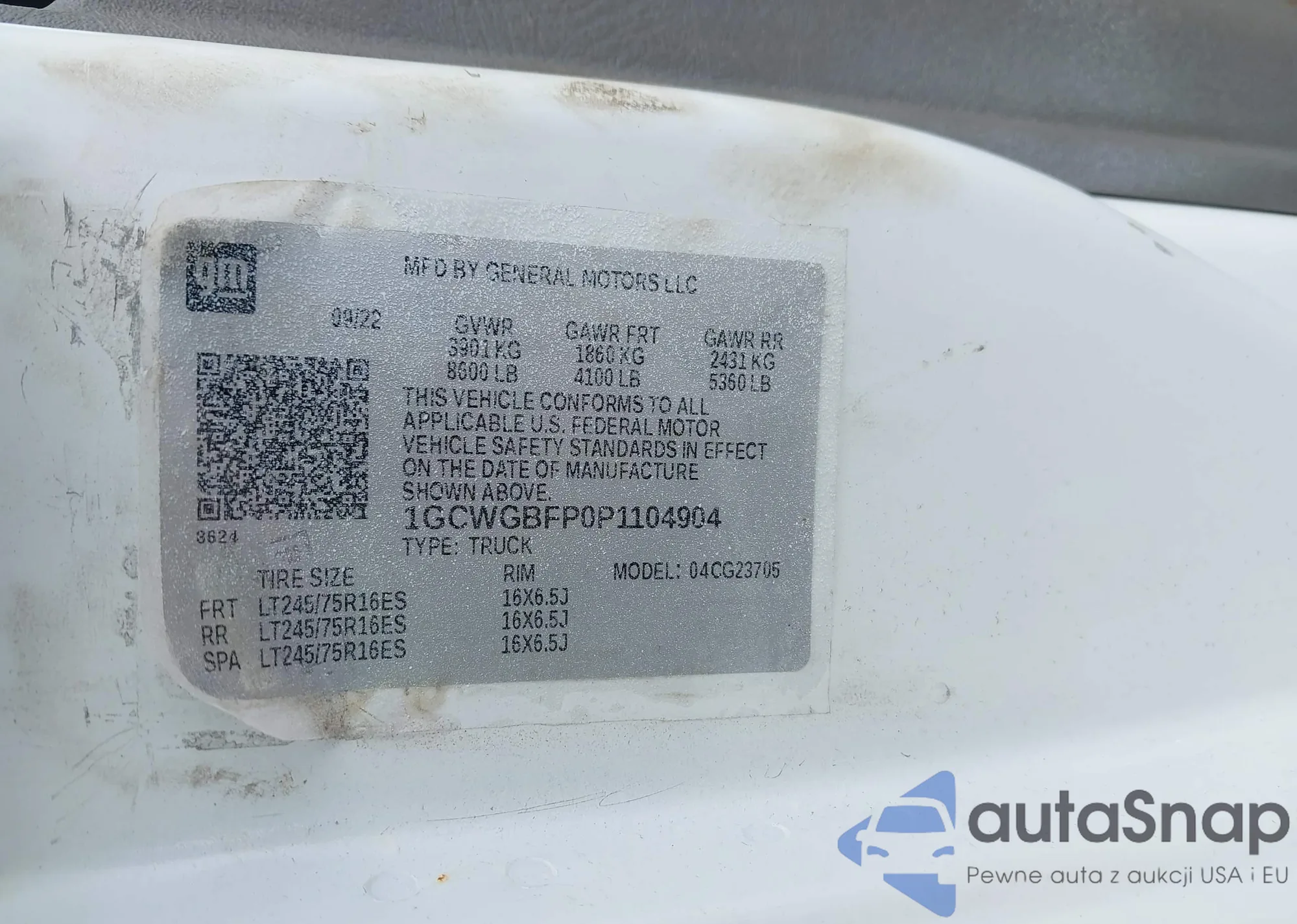 LOT: 41891872 VIN: 1GCWGBFP0P1104904