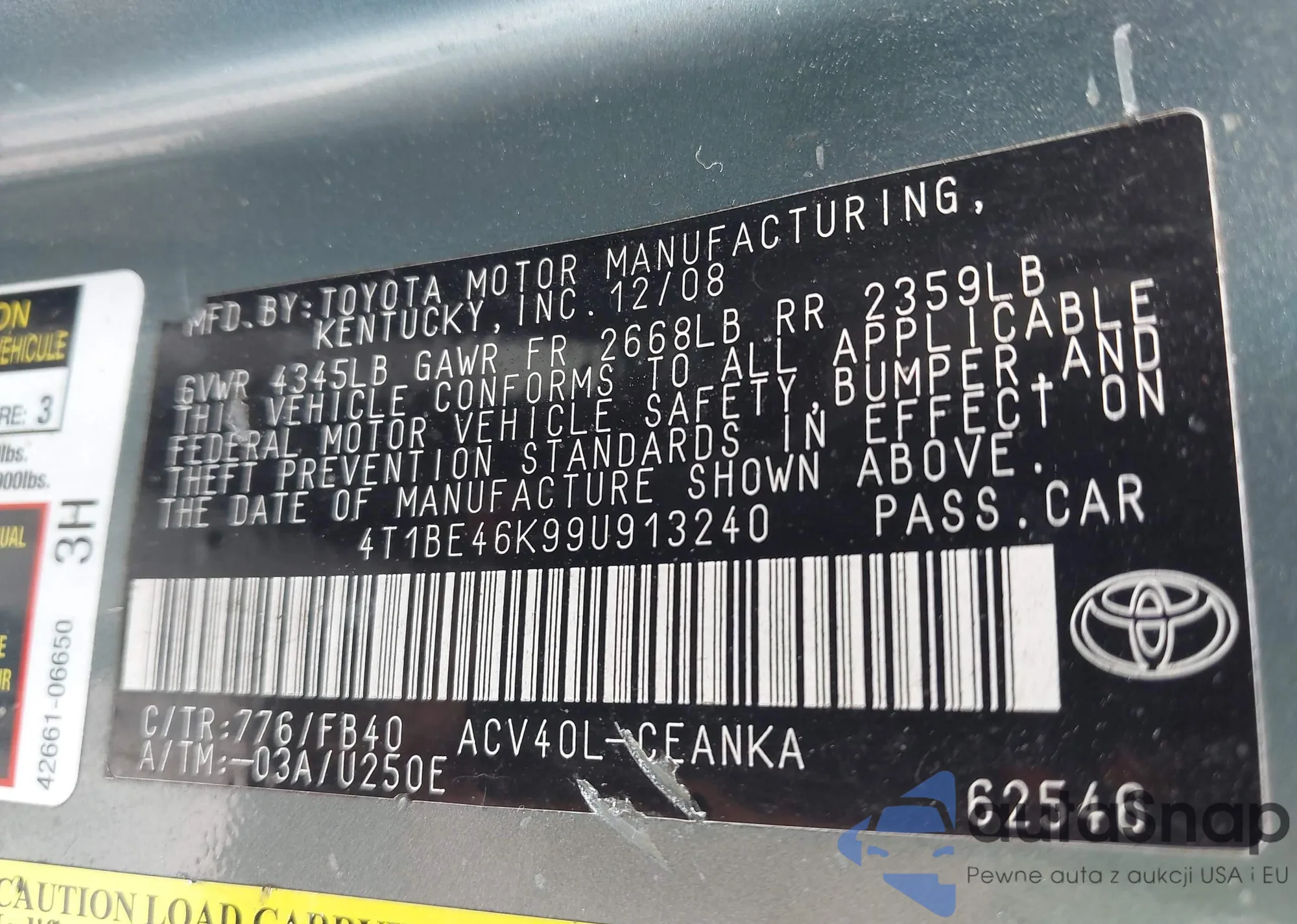 LOT: 42345958 VIN: 4T3BK11A69U008189