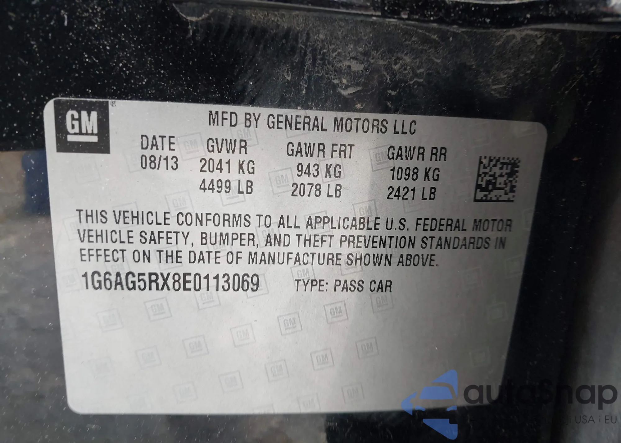• VIN 1G6AG5RX8E0113069